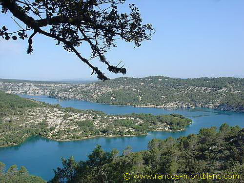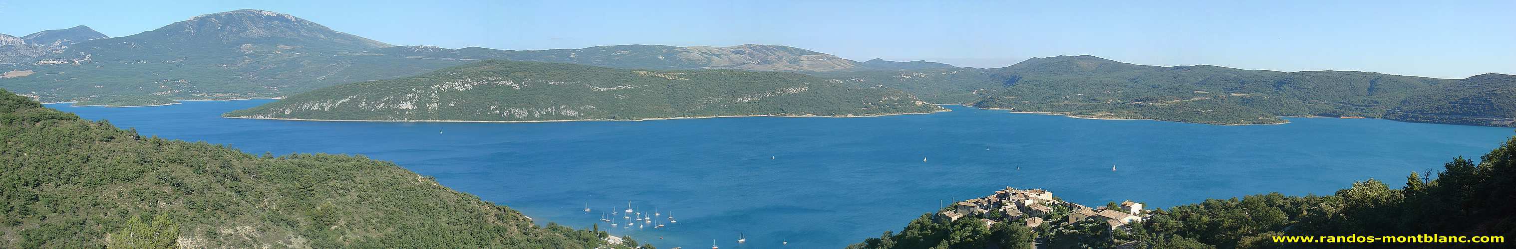 Le lac, long de presque 5 kilomètres, se prolonge à l’amont par les Basses Gorges du Verdon sur 8 kilomètres, jusqu’à Quinson.