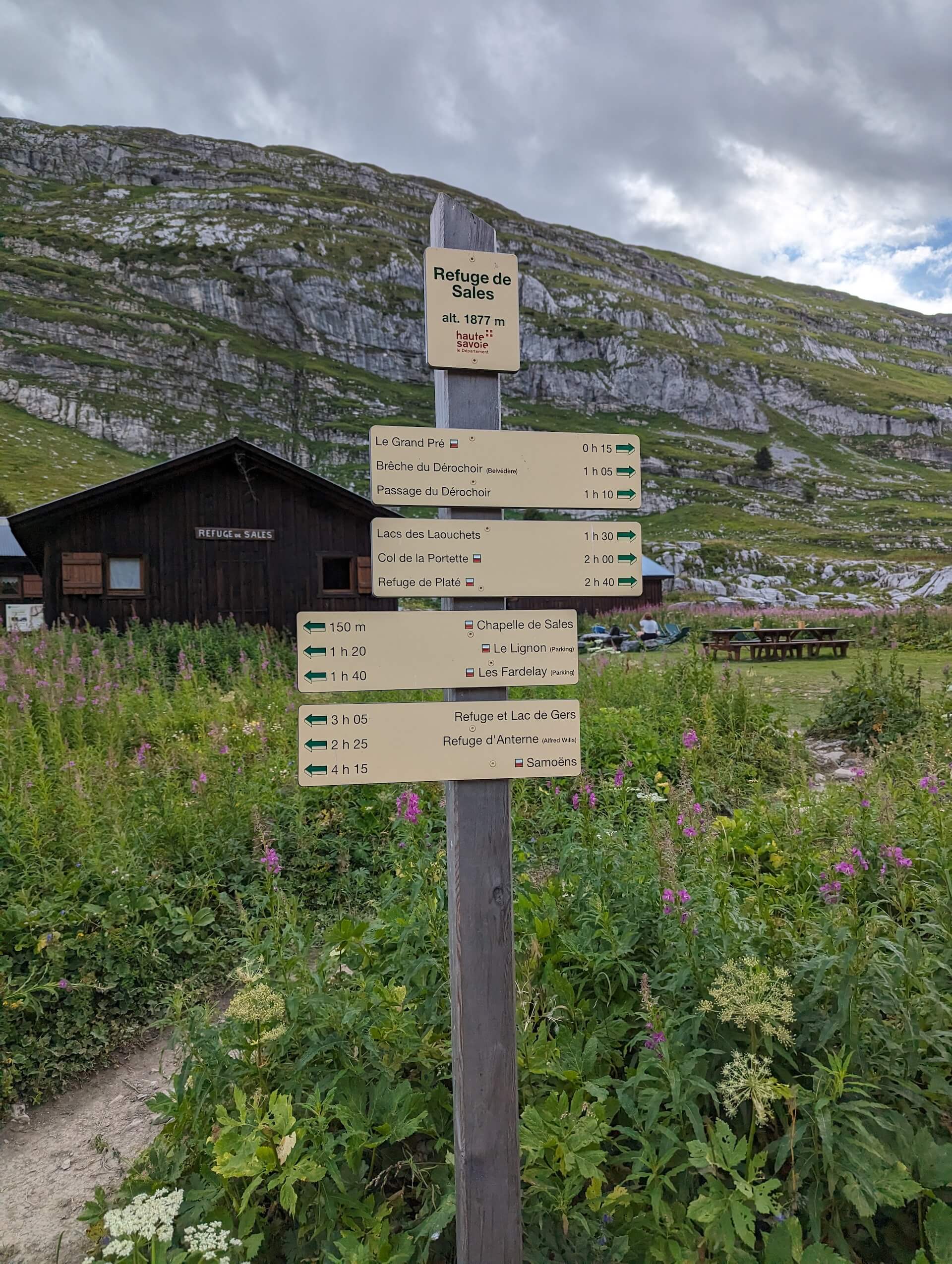 Situés au cœur du massif des Fiz entre le désert de Platé à l’ouest et le Rocher des Fiz dominant le Lac d’Anterne à l’est, les Chalets de Sales, posés dans la plaine du Grand Pré, constituent un minuscule havre de tranquillité qui ravira le randonneur. Bien qu’assez raide en première partie de parcours, l’abrupt sentier du GR 96, alternant entre rivières et cascades, fera vite oublier les efforts fournis à l’aune des paysages offerts.