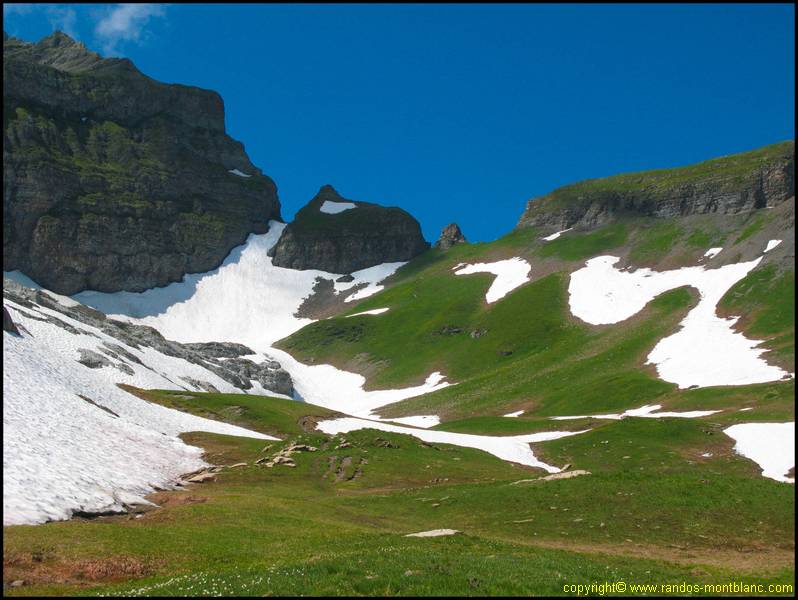 Il est tout à fait possible d’éviter le passage du Dérochoir ; il suffit pour cela d’emprunter le Col de la Portette et de redescendre dans la combe du Grand Pré pour rejoindre les Chalets de Sales.