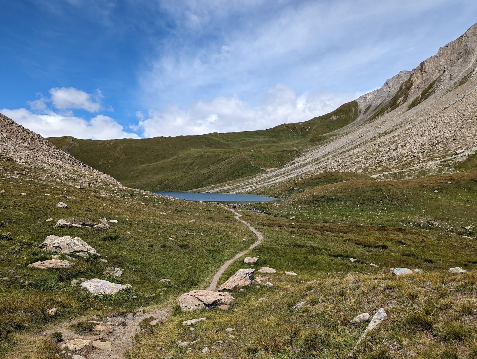 La montée pour franchir ce col est très abrupte et le sentier par endroits assez caillouteux. L’effort est réel, mais celui-ci est vite oublié une fois arrivé au lac de Licony. L’ascension vers le col de Licony est heureusement beaucoup plus facile. Le sentier contourne le lac par la droite. Après une courte montée, oblique sur la gauche en une longue traversée peu pentue. Le col de Licony est ensuite atteint très rapidement.