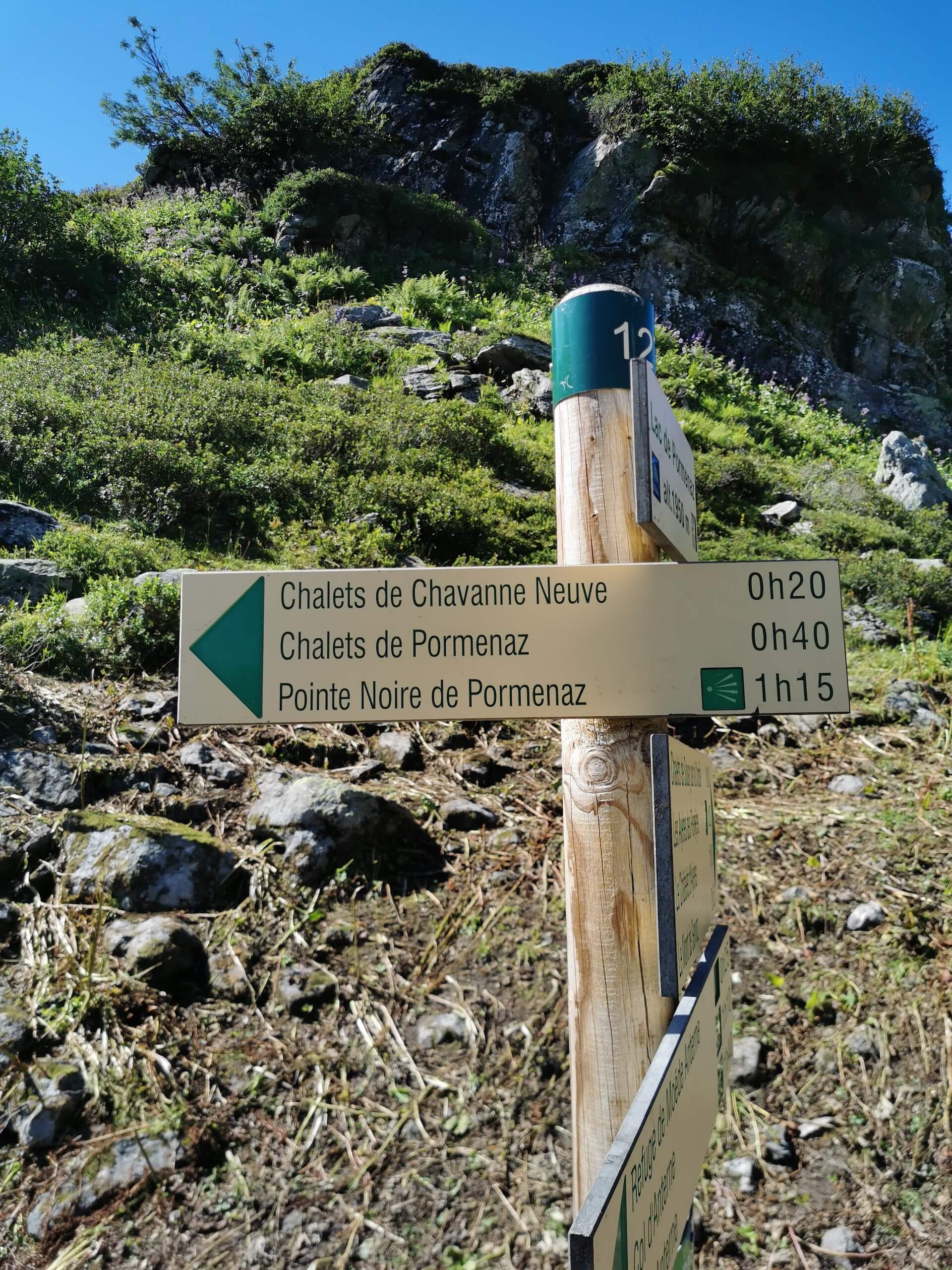 Emprunter le parcours décrit pour le Lac de Pormenaz. En arrivant au lac, suivre la direction au panneau qui indique « Pointe de Pormenaz — 1 h 15 » et prendre le sentier qui part à droite du lac. L’itinéraire est parfaitement balisé par des plaques jaunes vissées sur les rochers, de petits potelets également peints en jaune et plantés dans l’herbe, ou encore des points jaunes dessinés sur les rochers. Le cheminement dans les prés est facile et la pente reste modérée.