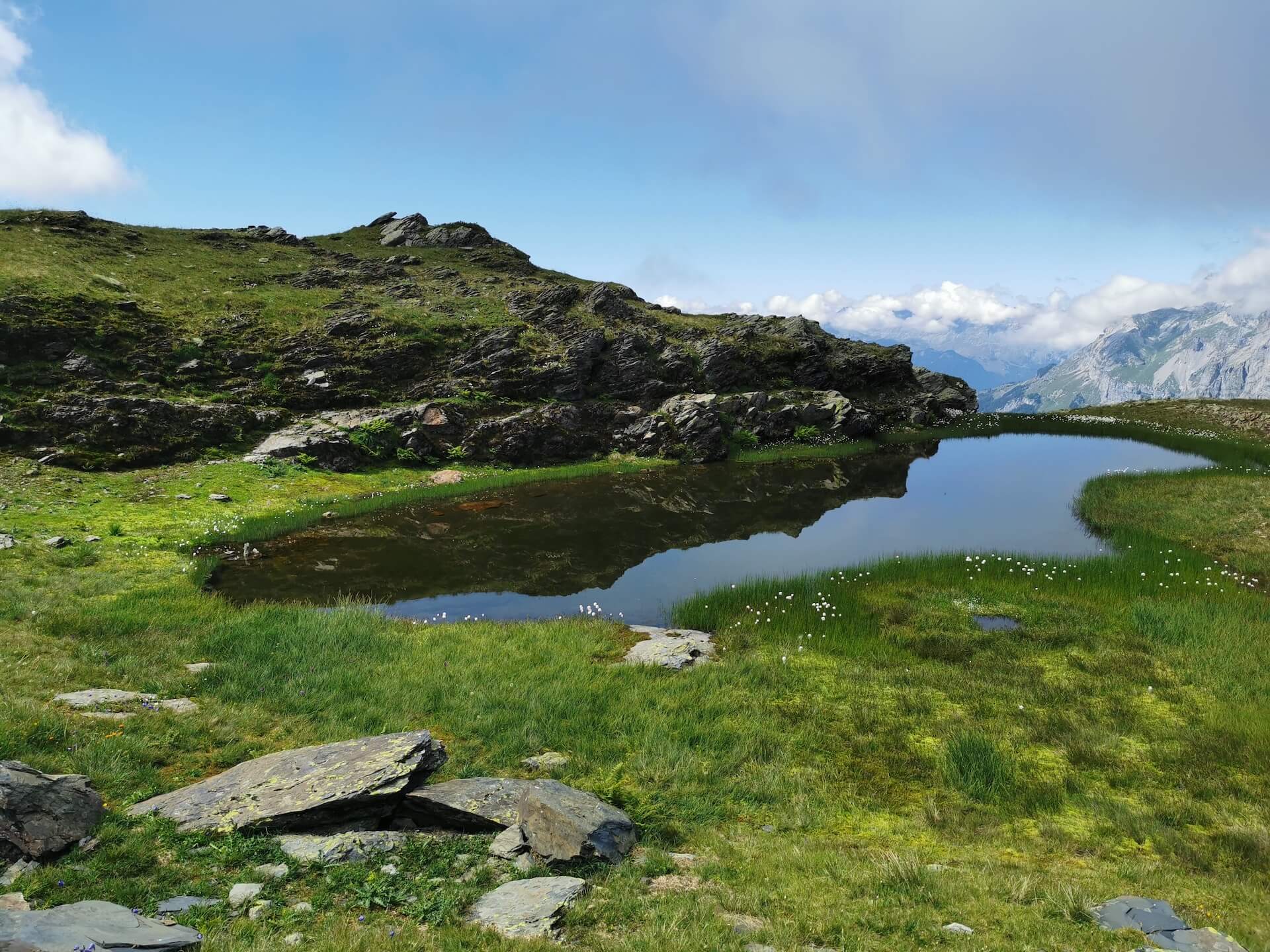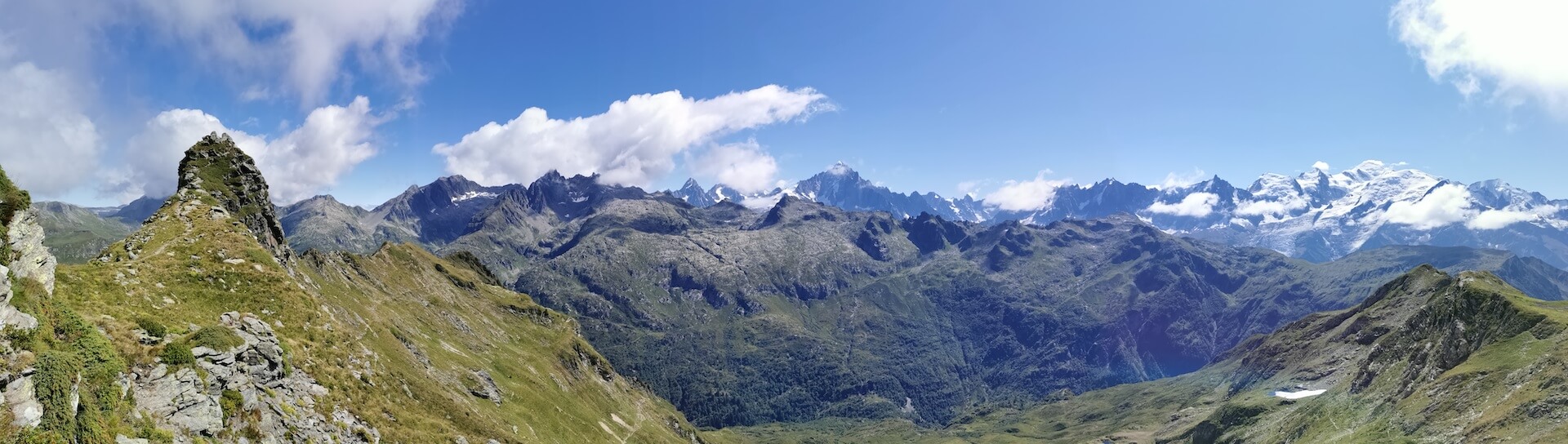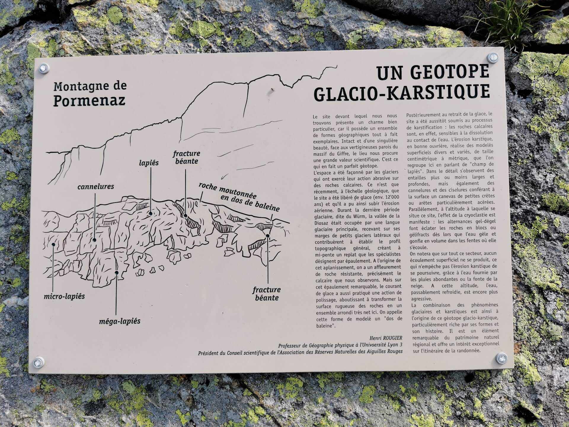 Après avoir dépassé une gouille, le sentier oblique ensuite vers la gauche et devient plus raide pour atteindre un premier sommet avec une table d’orientation posée au sol. Le panorama y est tout simplement splendide. Pour les plus téméraires, il est possible de rallier le sommet de la Pointe Noire de Pormenaz situé à une centaine de mètres de là. Toutefois, le sentier est certes bref, mais celui-ci est très exposé au vide : je déconseille donc cette dernière partie aux personnes sensibles au vide.