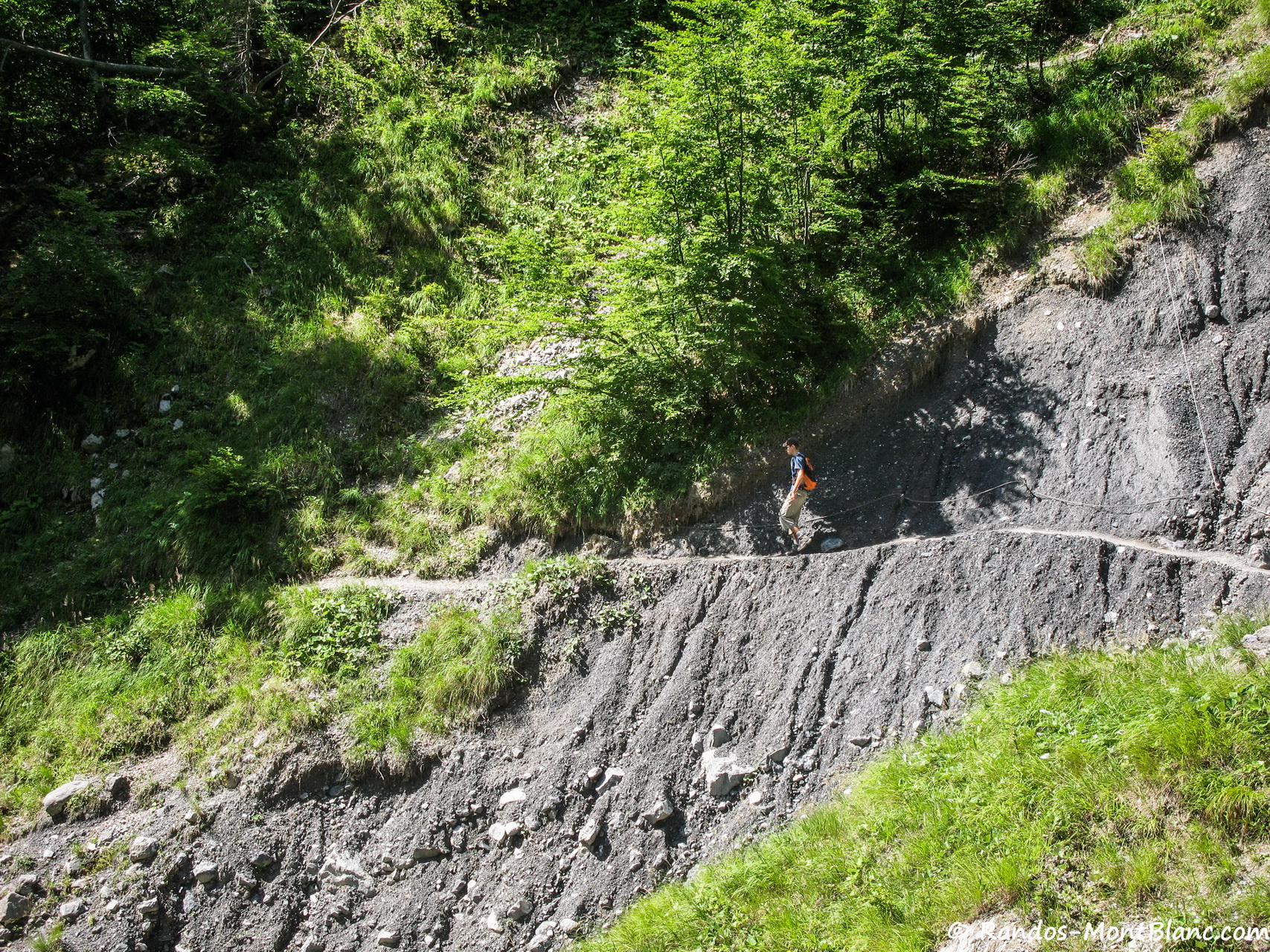 Après cette longue mise en jambes de plus d’une heure, la sente va s’élever modérément dans la forêt et traverser tout une série de torrents à sec en fonction de la saison, pour gagner le Chalet du Boret.