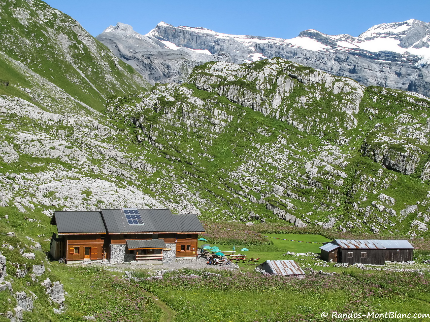 Une très belle randonnée ! Excellentes chaussures requises et bâtons conseillés dans la descente. Câbles indispensables dans les passages mouillés avant le pas de Boret. De nombreux chamois aperçus, sur les falaises le long du chemin au fond de la vallée glaciaire, et entre le pas de Boret et le refuge de la Vogealle. Là, un troupeau avec des femelles et leurs petits, magnifiques ! Le refuge de Vogealle est superbe, avec ses drapeaux de prière, sa pelouse alpine, sa table de ping pong, son accueil sympathique, et ses succulentes tartes aux myrtilles.