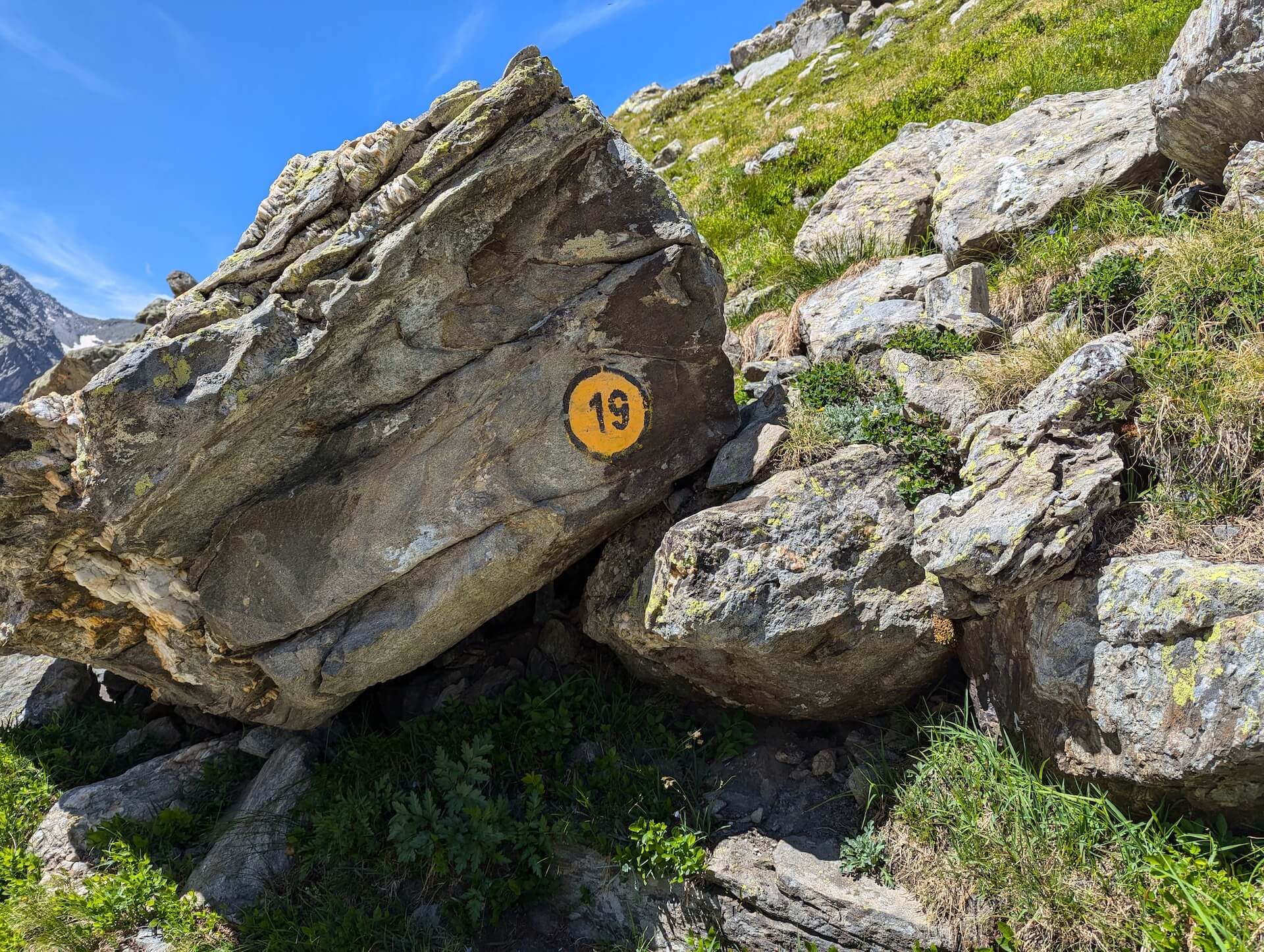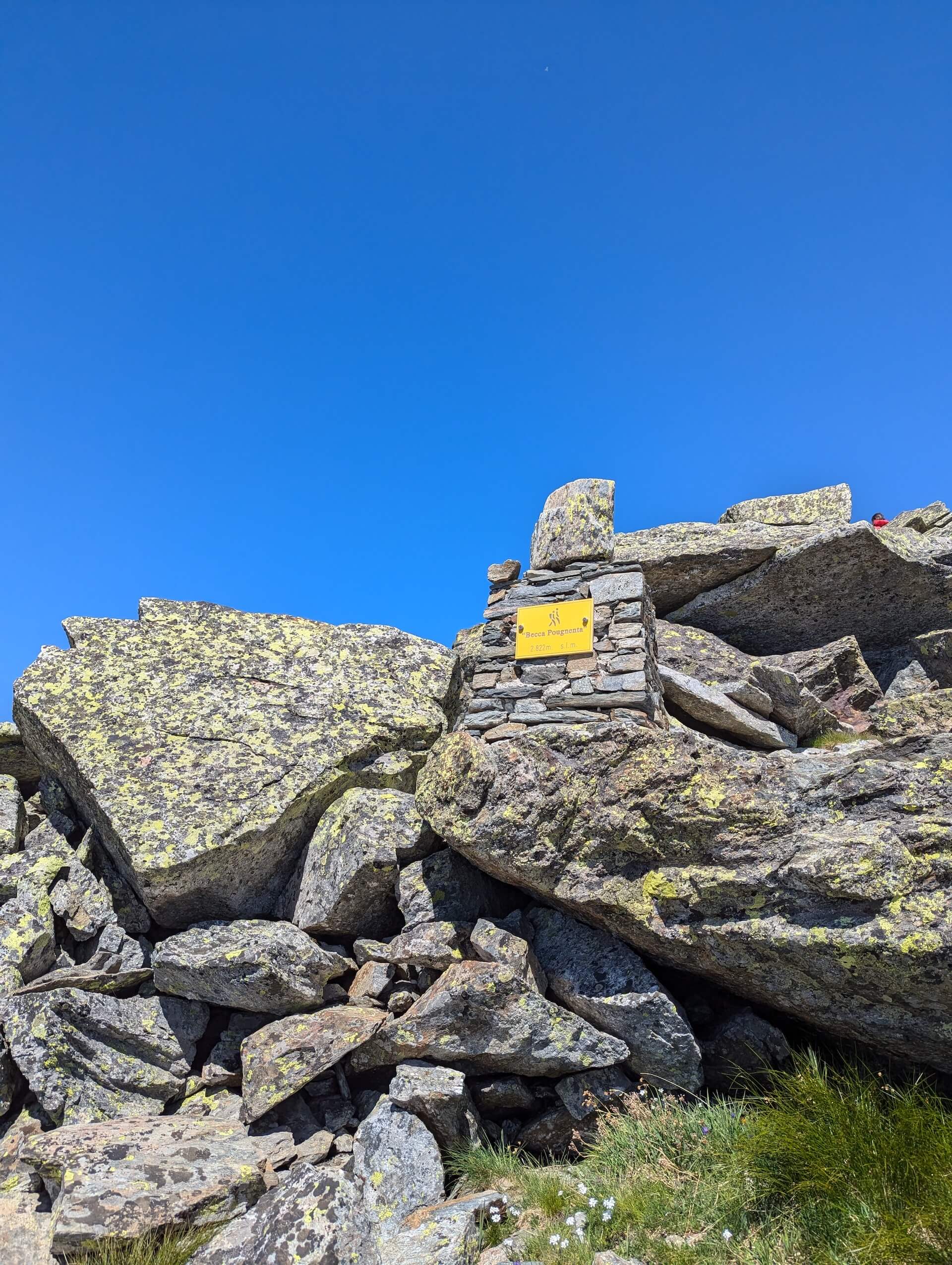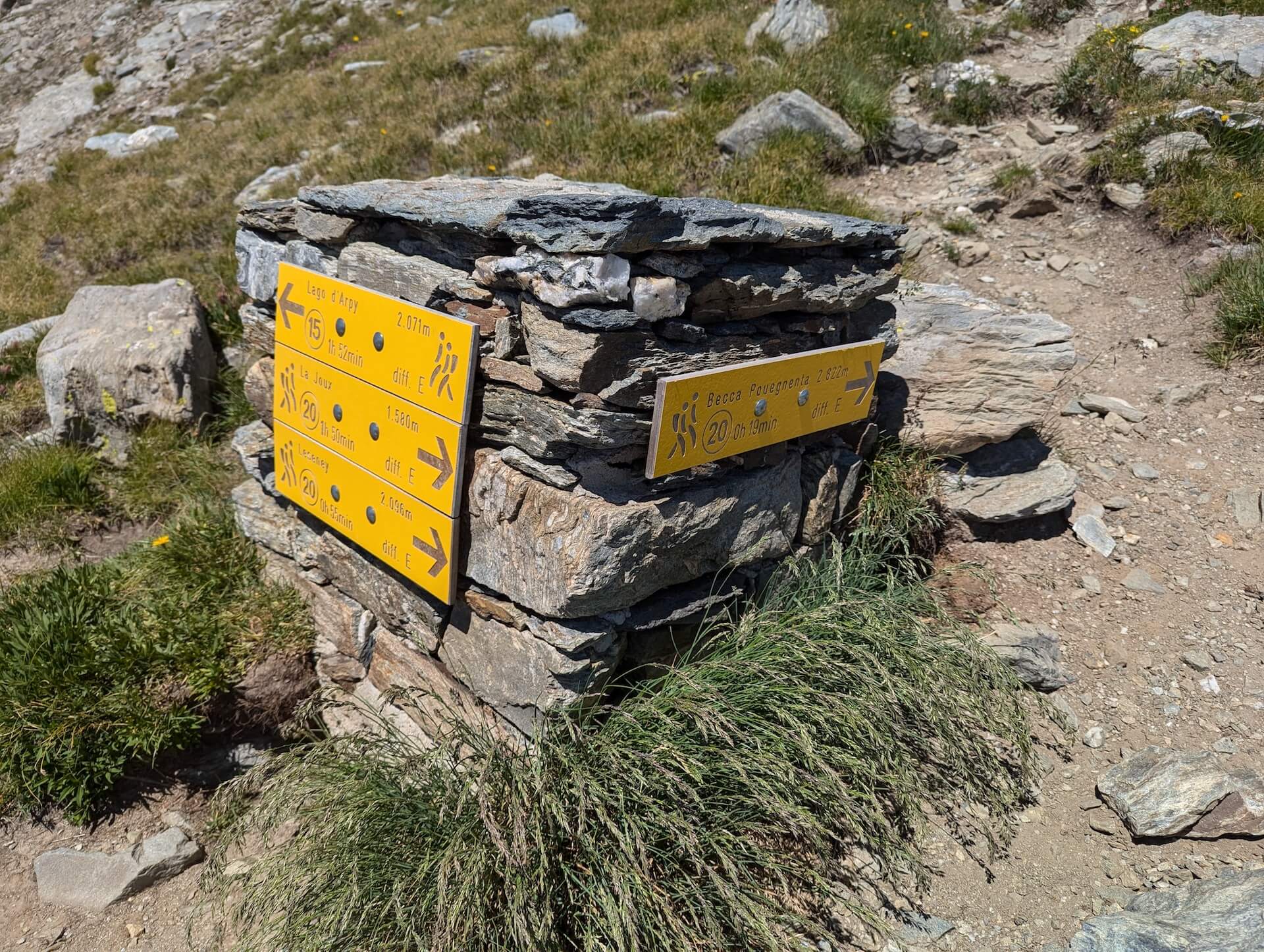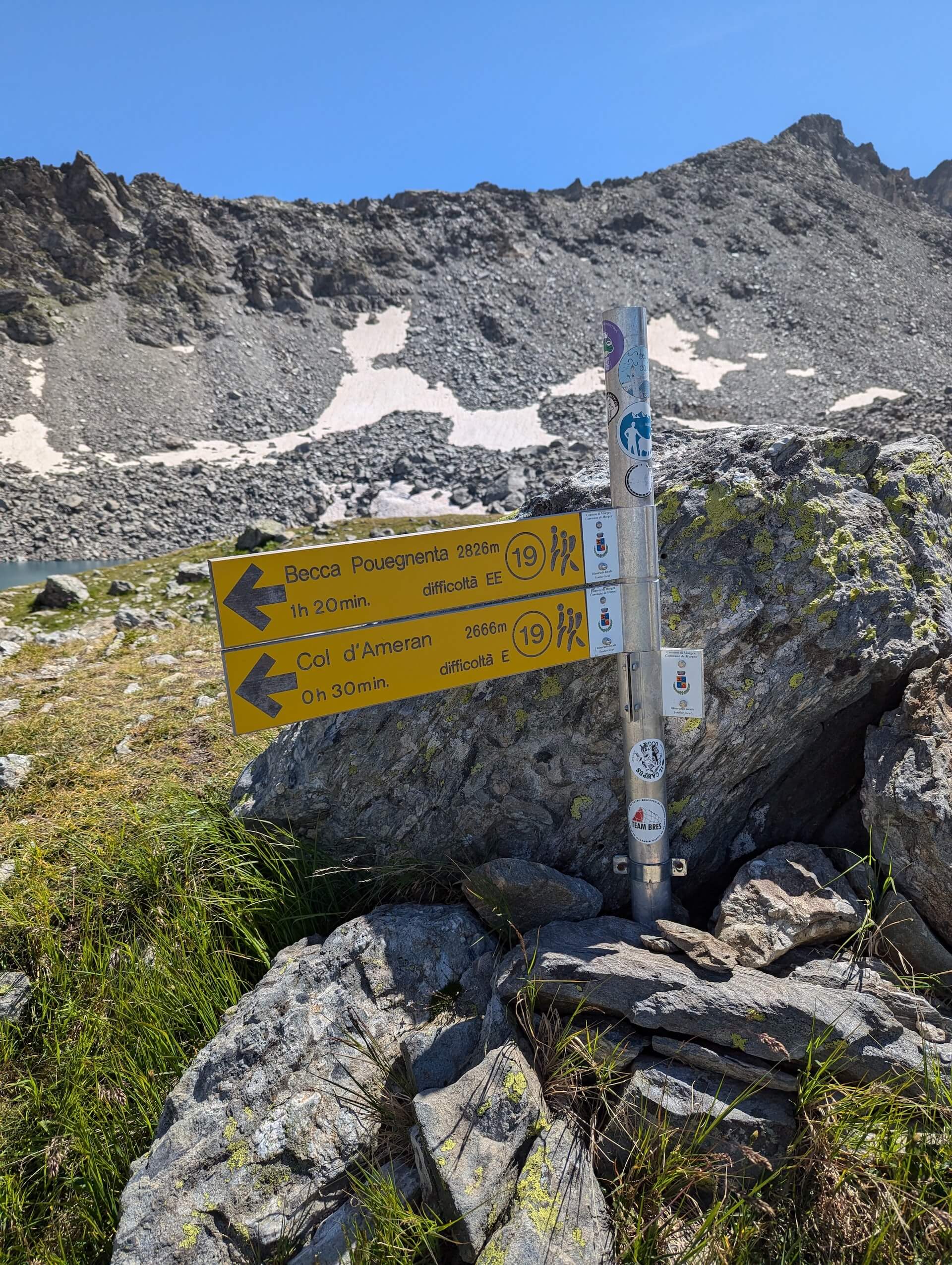 Once at the Lago di Pietra Rossa, follow the signpost to “Becca Pouegnenta – 1 h 20 – number 19”.