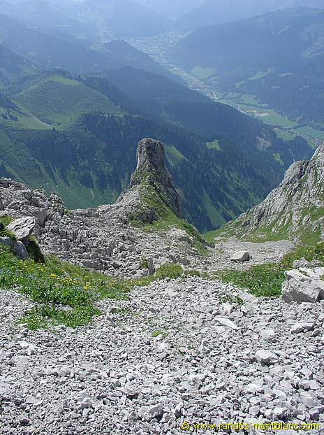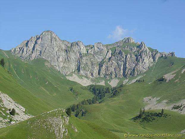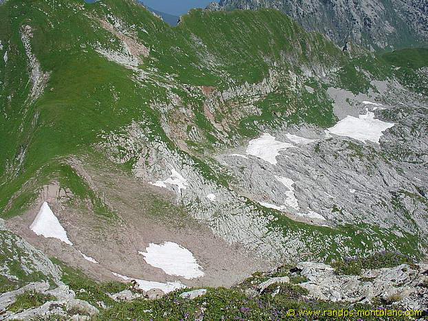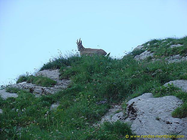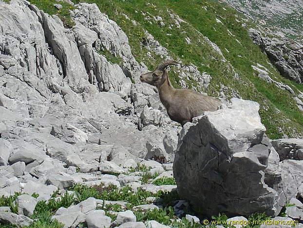 Go down the path to the left of the summit of Cornettes de Bise. It will take you through a lapiaz that you have to de-escalate to reach the Col de Chaudin. This col marks the border with Switzerland. Then, take on the left the horizontal path towards Montagne de Loz. After a bend on the right, the pathway takes you through a large combe of rocks inhabited by ibexes. You finally reach the Chalets de Loz nestled at the foot of Mount Gardy.