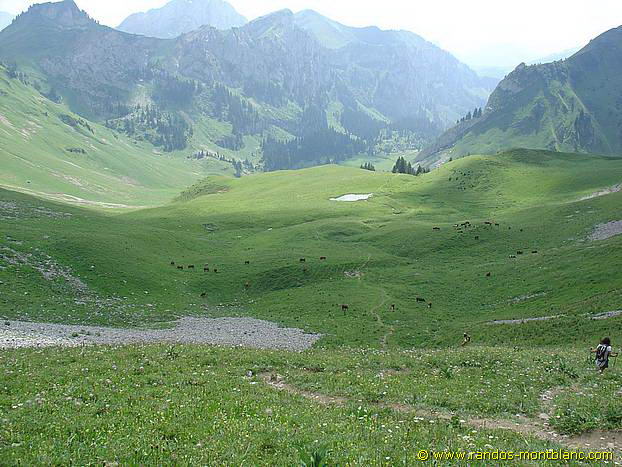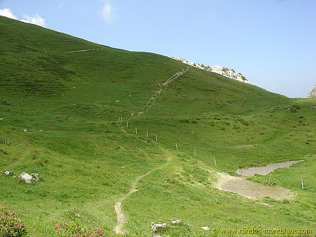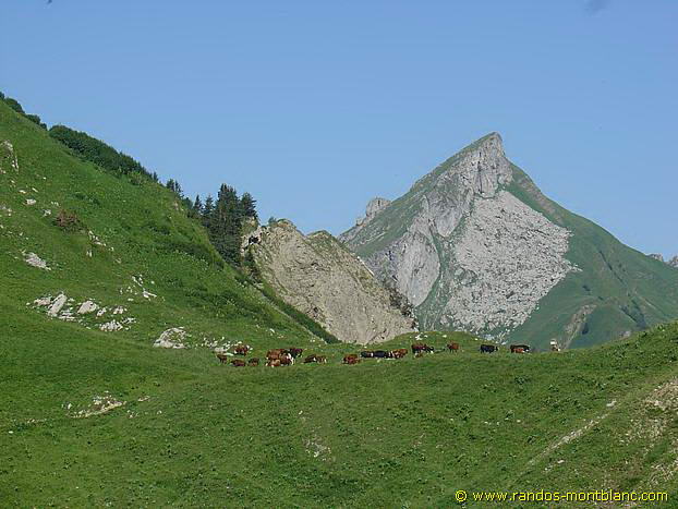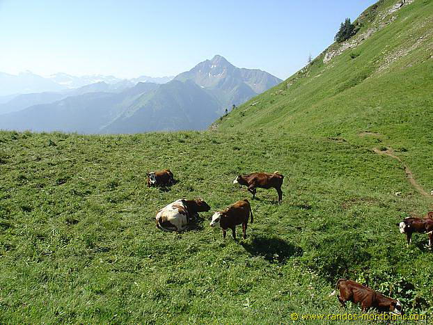 Then, return to Col d’Ugeon to take the path that leads back to the Chalets de Bise after a beautiful crossing of the mountain pastures. Note the sale of goat and cow cheeses at the chalets.