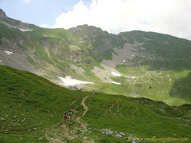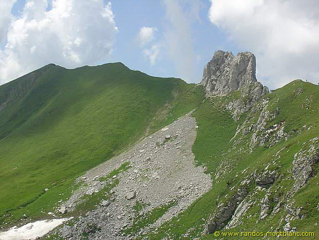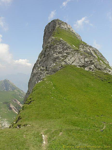 The path then goes left in a large bend to reach, after a short climb, the Col d’Ugeon facing the Dent de Velan. In a few minutes, a short ascent allows reaching the base of Dent de Velan with a very nice view of Dent d’Oche and the Lac de Darbon.