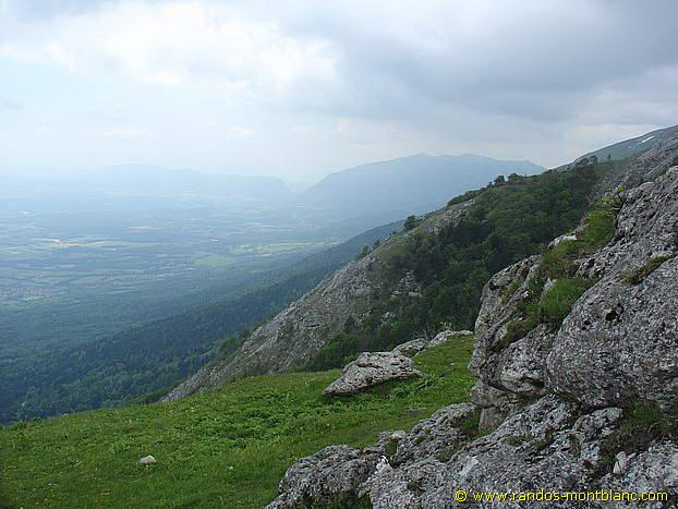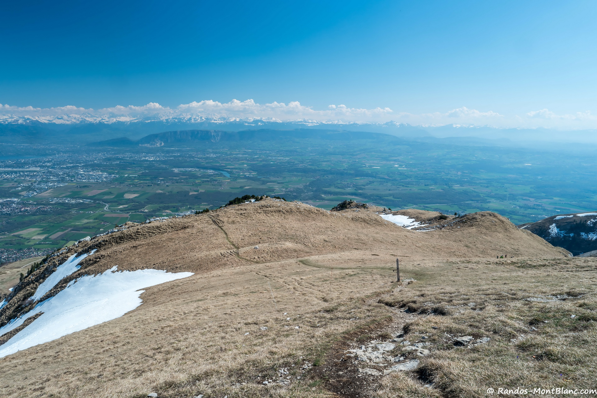 Continue on the path overlooking Geneva and the Alps. The pathway sneaks further between rocks and climbs more steeply to reach a grassy plateau and Chalet du Narderans located on the left. Continue the path rising between rocks. After a relatively steady ascent, you reach the foot of a rocky spur offering a beautiful view on the Salève. A final effort under this spur makes it possible to reach the summit in about fifteen minutes.