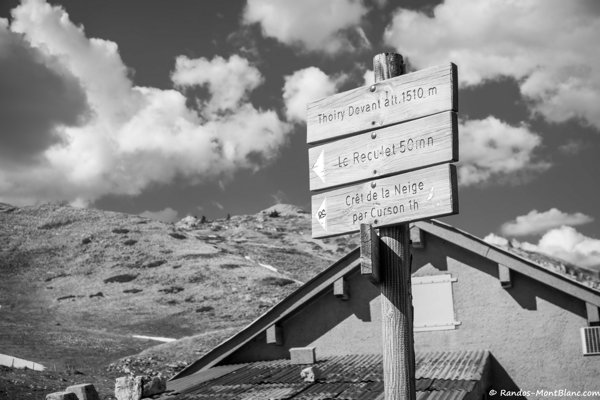 – Or take the path leading to the Crêt de la Neige and then turn right once arrived in Sur Thoiry (1680 m). The pathway reaches the Chalet de Thoiry devant (1,510 m) and then La Croisée after a somewhat hard descent for the legs.