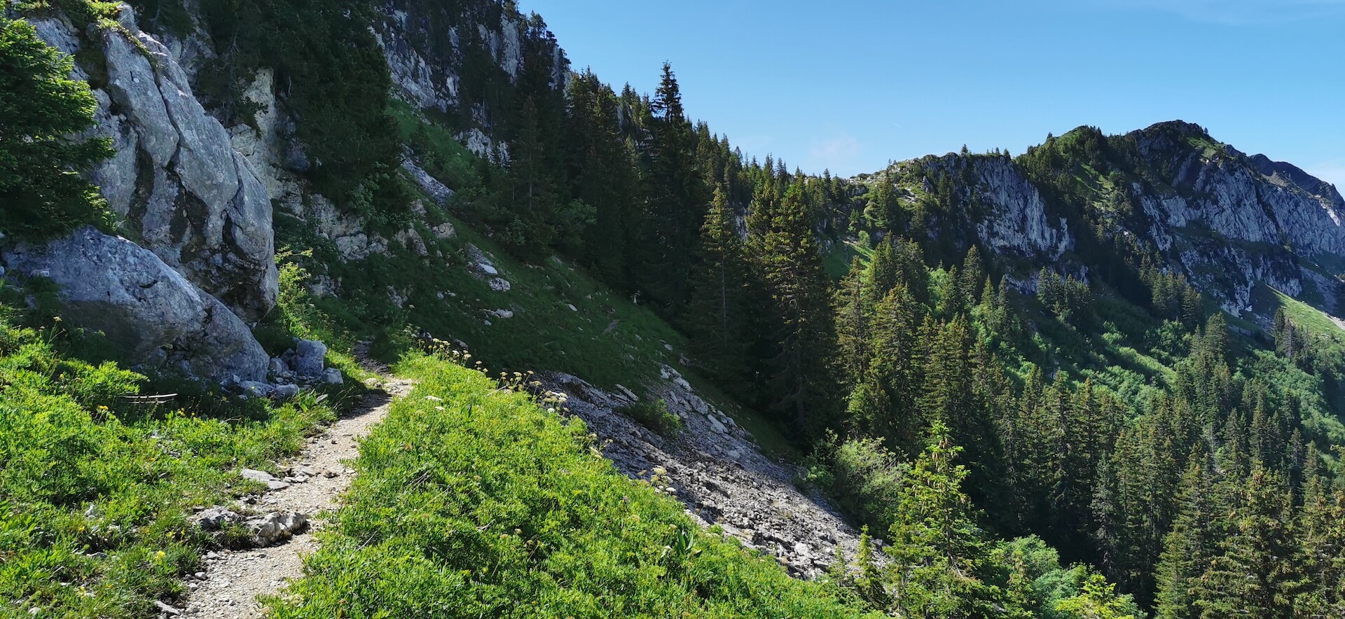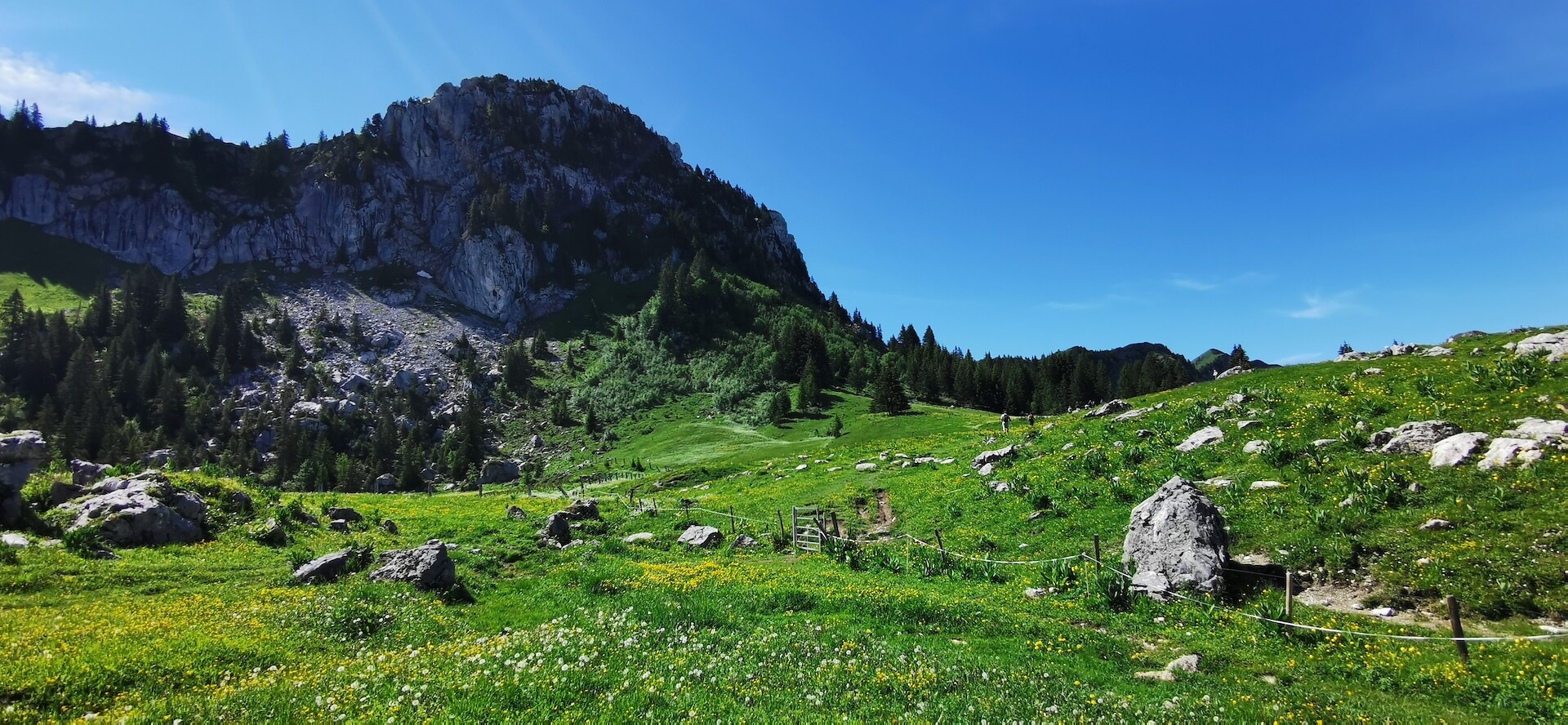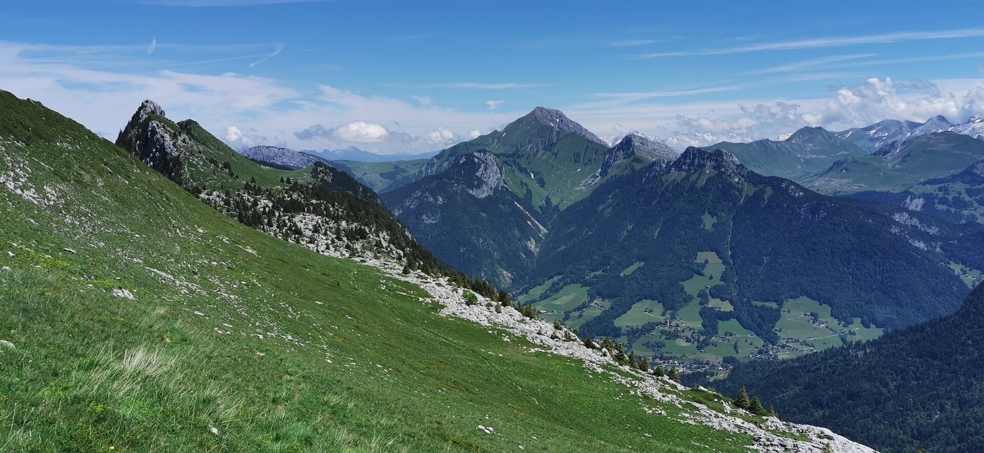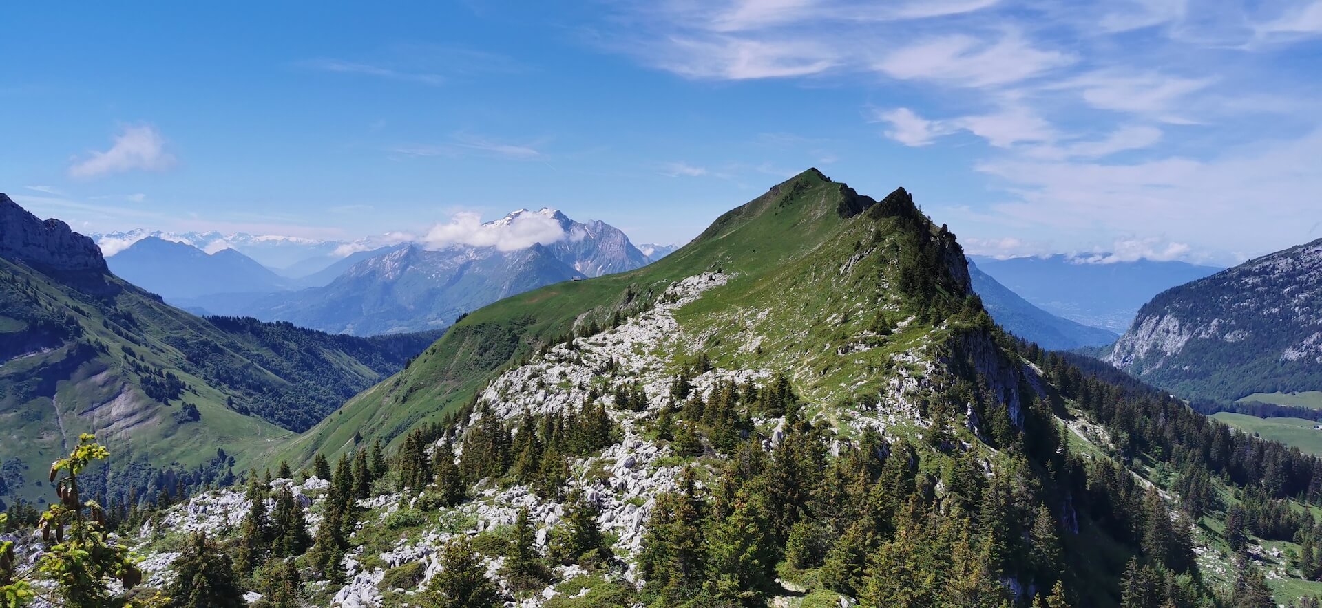 After a well-deserved break, turn around and head towards Pointe de Québlette, which is clearly visible, as well as the path through the meadows. When you reach a rocky outcrop, leave the path at a wooden post and then turn right to join one of the paths leading to the ridge. The summit is then quickly reached and the view quickly makes you forget the efforts made during the climb.