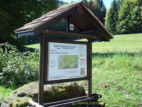 Go back to the junction and take the trail on the left leaving on the right the “Tour de Chevran” track. After a hundred meters, another panoramic point reveals the Valley of the Arve and the Mont Blanc Massif.