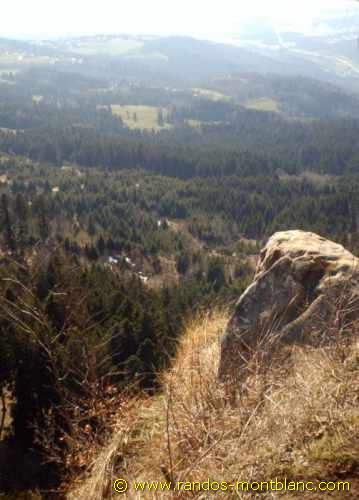Retrace your steps, then turn right at the fork just before the Saut de la Pucelle (do not climb the ridge) and follow the pathway until you find the path taken for the ascent.