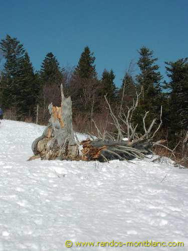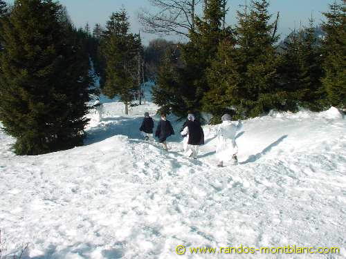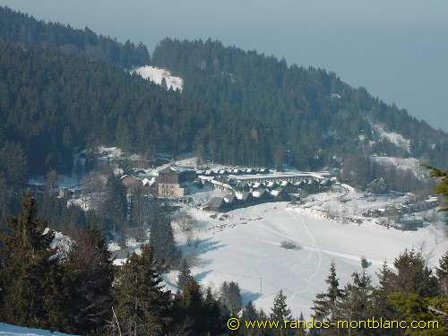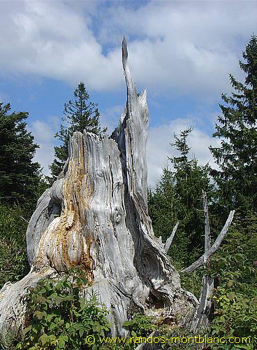 From here, turn left and proceed in the direction of the Saut de la Pucelle distant of about twenty minutes where you can discover a vertiginous promontory. Continue the trail through the forest to arrive further at a clearing and then Pointe de Brantaz which will give a majestic outlook on the peaks alongside Mont Blanc.