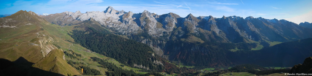 L’automne est l’occasion pour le randonneur de redécouvrir les massifs sous un œil nouveau. Parées d’une robe multicolore sur laquelle se reflète la douce lumière du jour, les pentes irradient en tous points le regard et laissent à voir des perspectives d’un profond calme sur les cimes alentours. Situé en amont du Grand Bornand entre la Chaine du Bargy et les Aravis, le Mont Lachat de Châtillon demeure un juste objectif de fin de saison. Sans difficulté notoire, le parcours opère en deux temps : si la première moitié jusqu’au Col de Châtillon constitue une tranquille mise en jambes, l’ascension du faite sur la piste de ski s’avère quant à elle nettement plus raide. Quoi qu’il en soit, le panorama servi au sommet sur les Aravis, les Bornes, le Beaufortain et le Haut-Giffre, récompensera immanquablement les efforts fournis.
