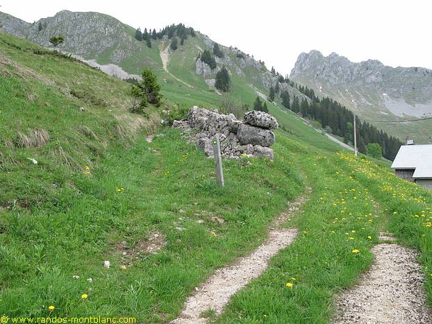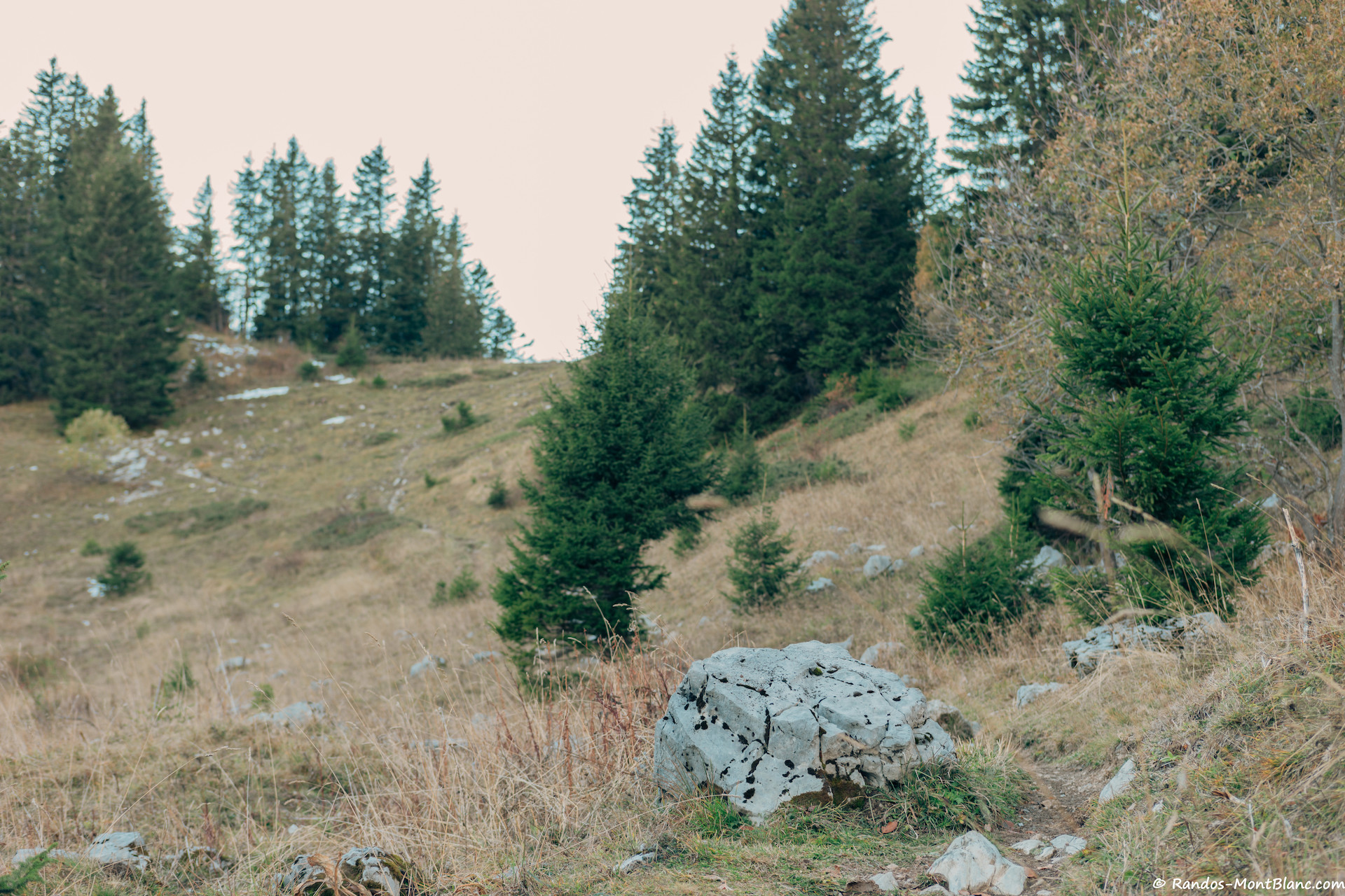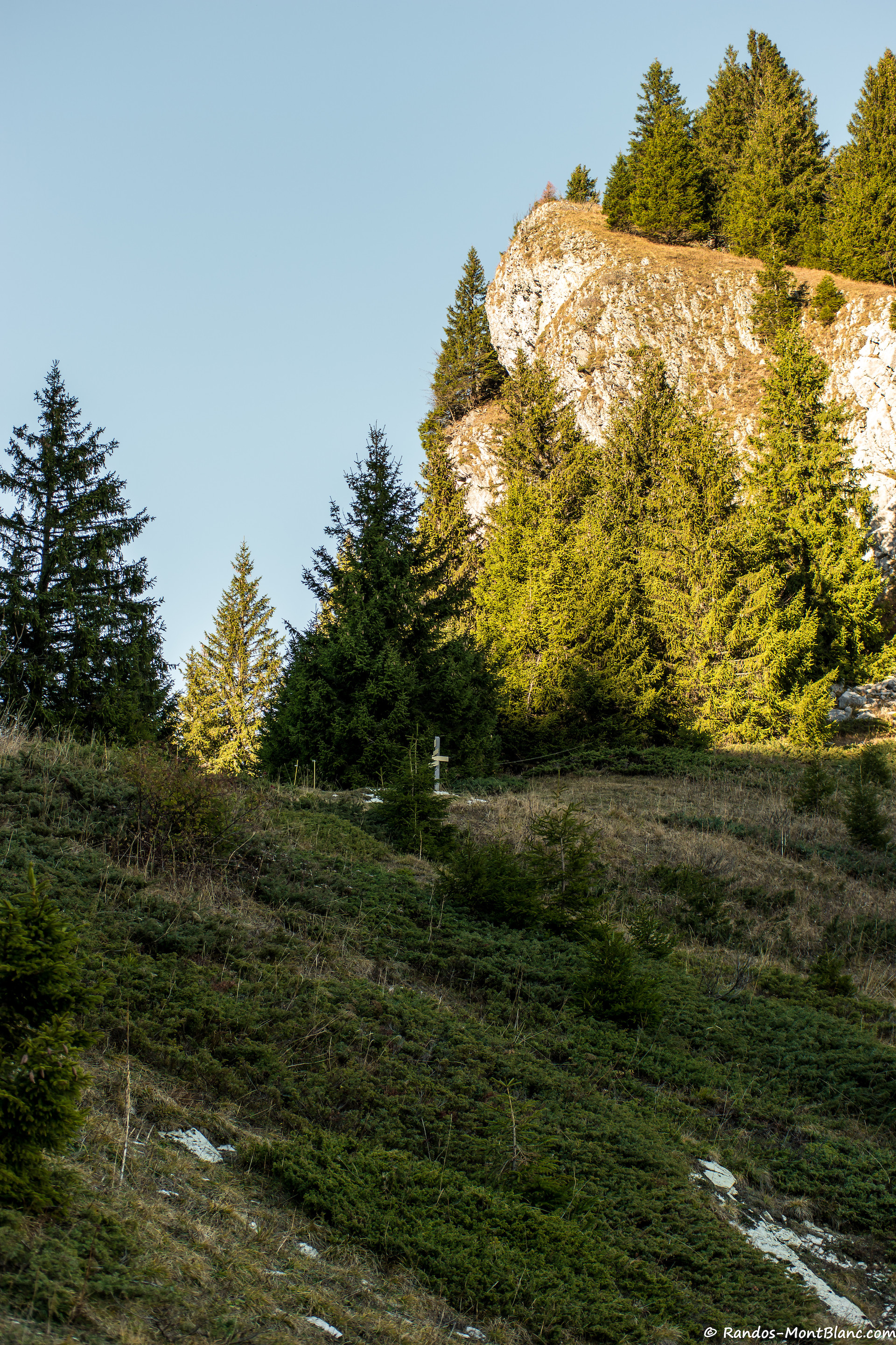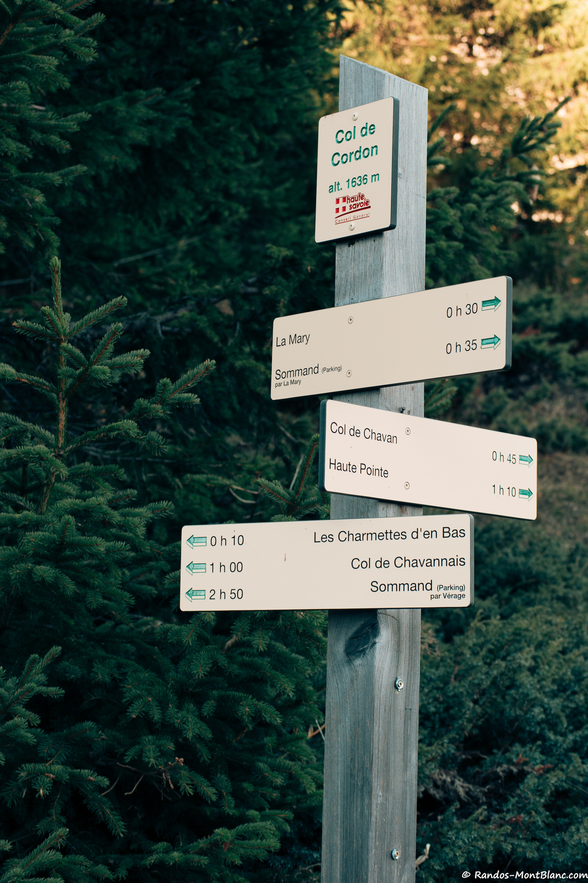 Le chemin débute au petit parking devant les trois chalets de La Mary. Le sentier décrit une longue courbe à droite menant au chalet de Vanne. Peu avant ce dernier, tourner à gauche comme indiqué par la flèche jaune pour emprunter la sente de gauche qui monte tout en longeant l’orée du bois sur la droite. Quelques mètres plus loin, une nouvelle flèche jaune invite à tourner à gauche. La trace s’enfonce dans la forêt et s’aplatit un peu. Quelques minutes plus tard, l’on rejoint une combe au pied du col de Cordon que l’on atteint en une dizaine de minutes après un effort quelque peu soutenu. Ne pas continuer à droite vers le panneau indicateur matérialisant le col, mais prendre à gauche la trace mal marquée qui grimpe dans le bois. Par endroits, il faut se faufiler entre les sapins. Continuer sur cette sente en direction d’un amas de rochers qu’il faudra franchir pour gagner un petit mamelon. Se diriger ensuite vers la crête et avancer jusqu’au sommet de la Pointe de Rovagne.