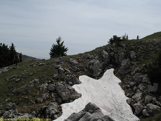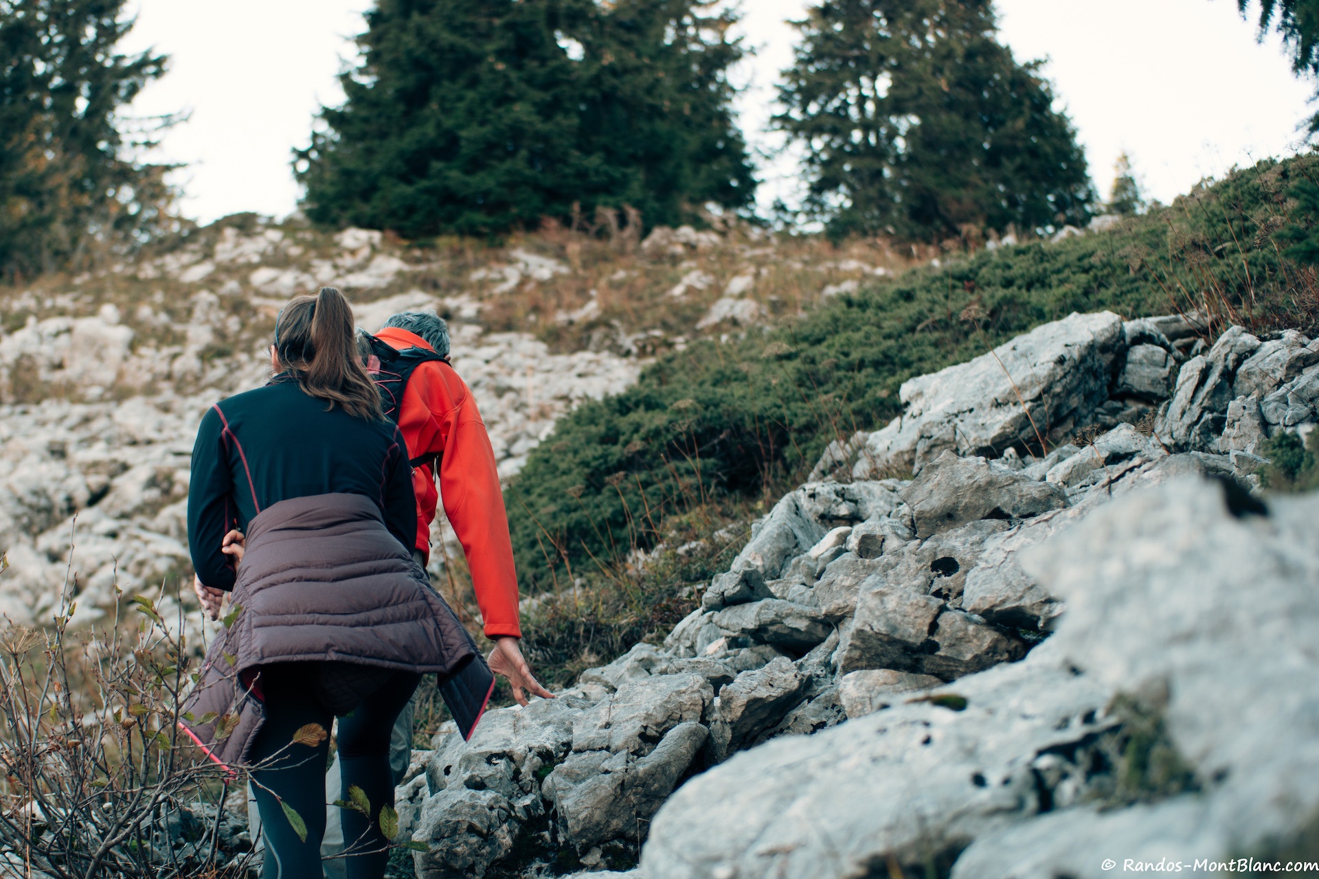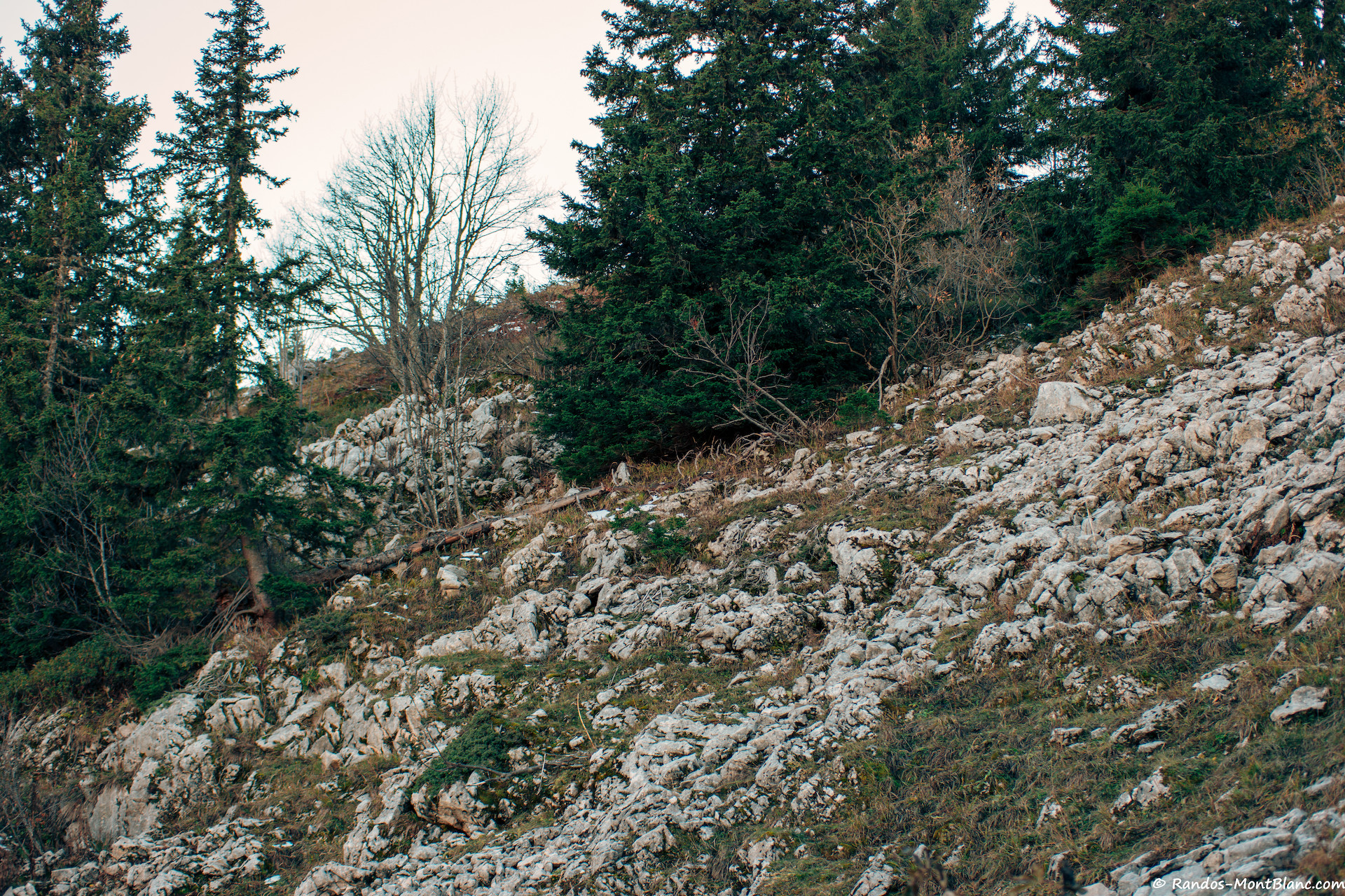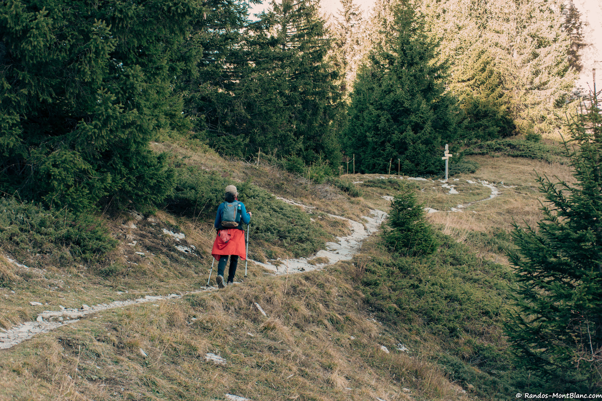 Le chemin débute au petit parking devant les trois chalets de La Mary. Le sentier décrit une longue courbe à droite menant au chalet de Vanne. Peu avant ce dernier, tourner à gauche comme indiqué par la flèche jaune pour emprunter la sente de gauche qui monte tout en longeant l’orée du bois sur la droite. Quelques mètres plus loin, une nouvelle flèche jaune invite à tourner à gauche. La trace s’enfonce dans la forêt et s’aplatit un peu. Quelques minutes plus tard, l’on rejoint une combe au pied du col de Cordon que l’on atteint en une dizaine de minutes après un effort quelque peu soutenu. Ne pas continuer à droite vers le panneau indicateur matérialisant le col, mais prendre à gauche la trace mal marquée qui grimpe dans le bois. Par endroits, il faut se faufiler entre les sapins. Continuer sur cette sente en direction d’un amas de rochers qu’il faudra franchir pour gagner un petit mamelon. Se diriger ensuite vers la crête et avancer jusqu’au sommet de la Pointe de Rovagne.