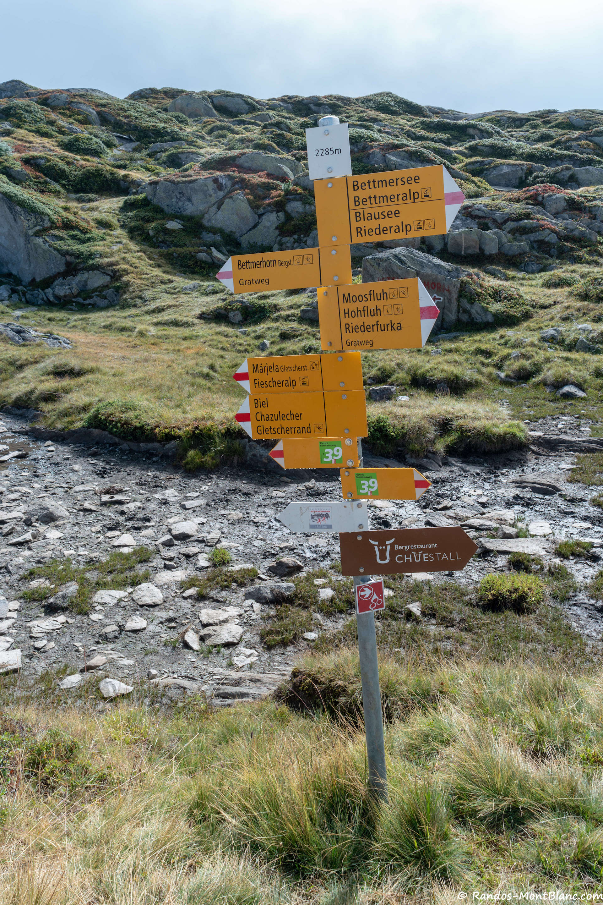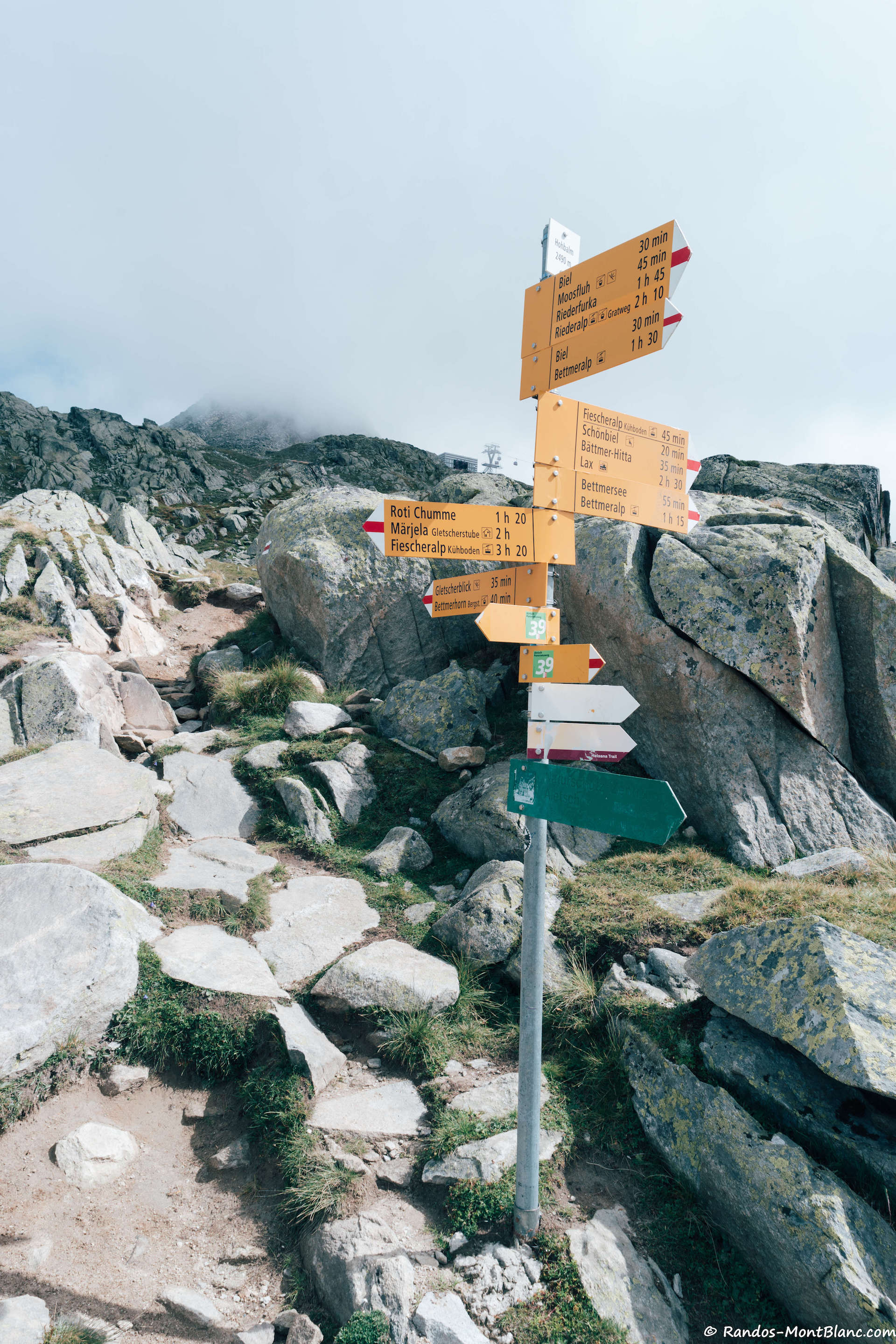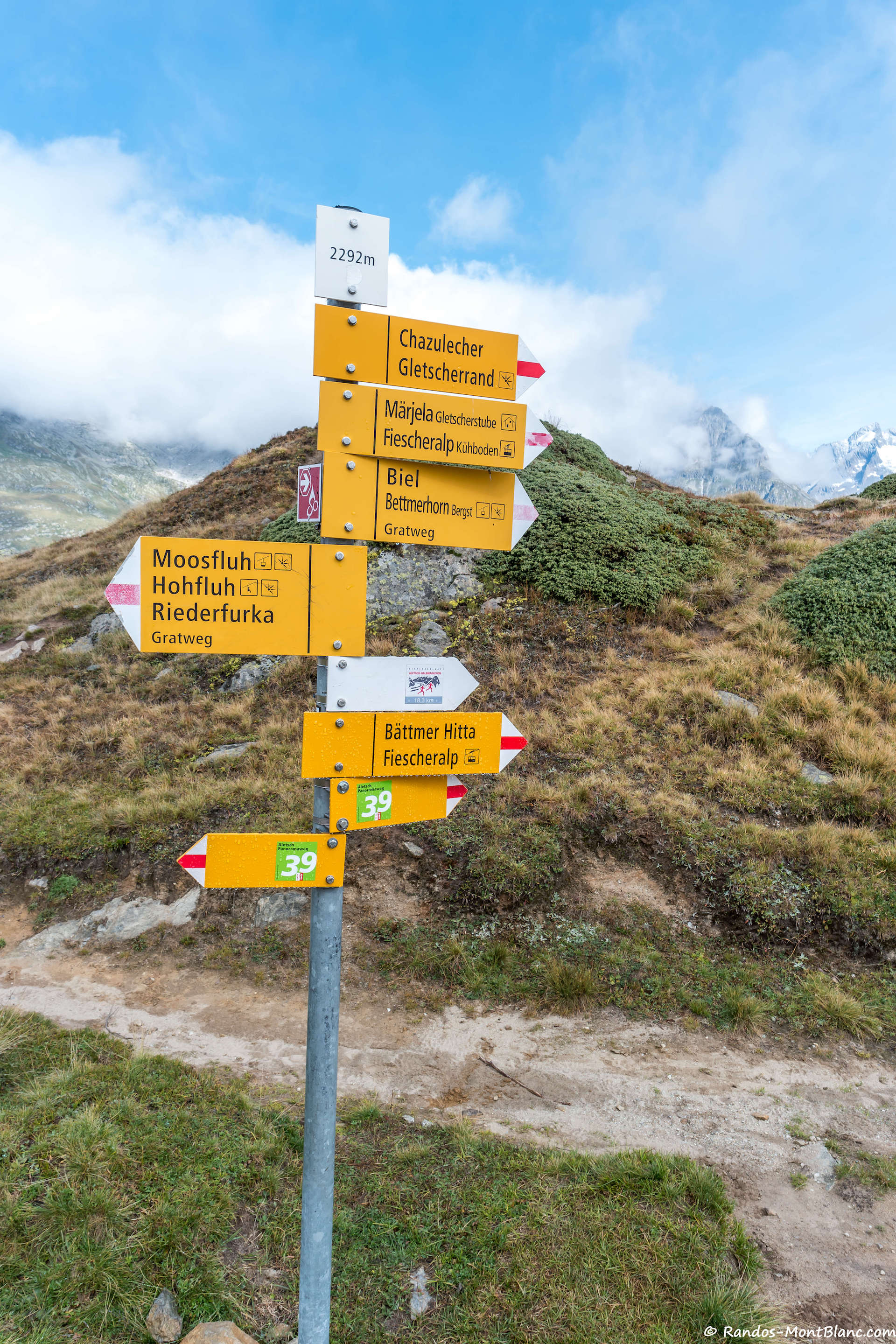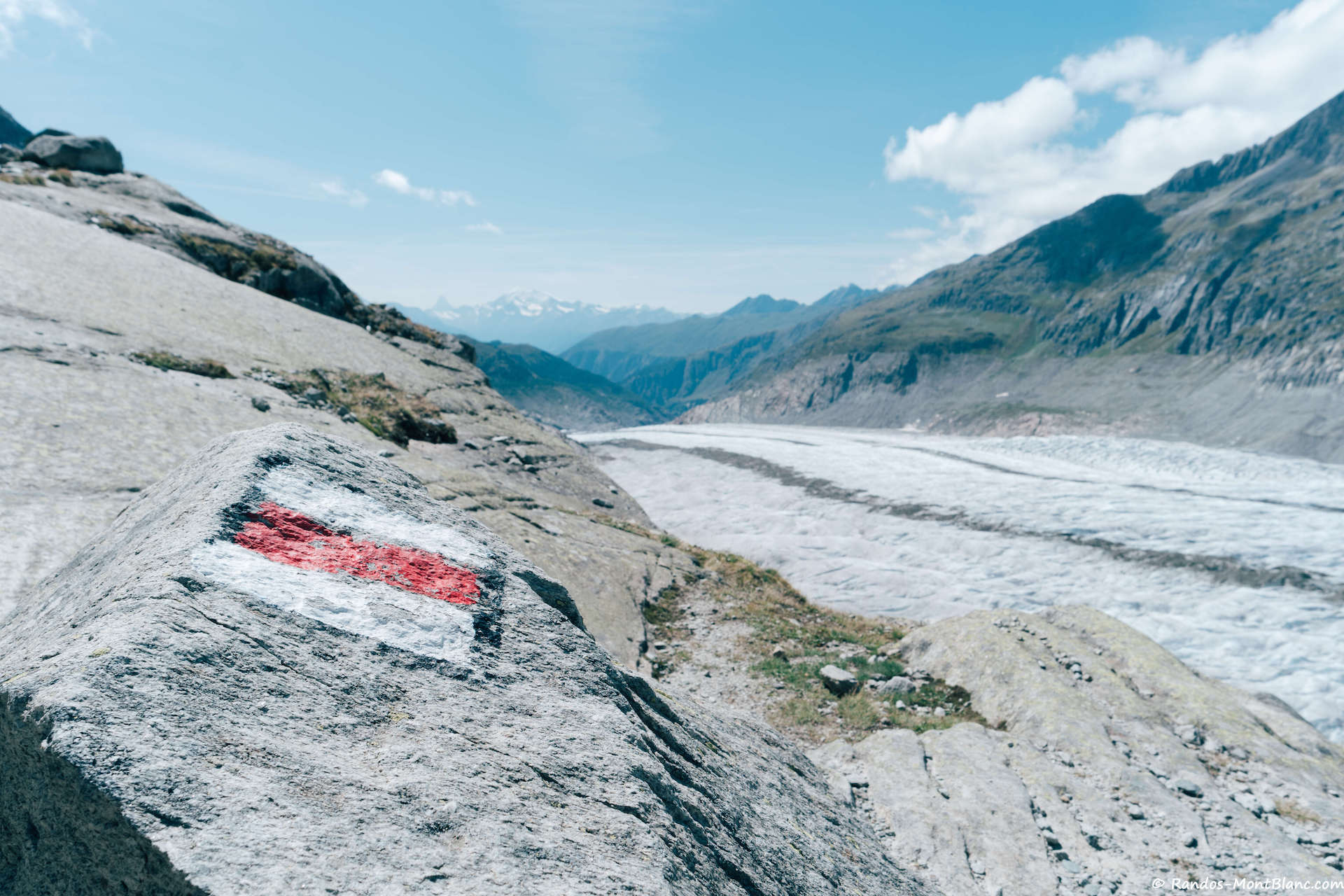 Le parcours que je propose ici emprunte le classique sentier panoramique (Panoramaweg) démarrant à la gare d’arrivée de la télécabine de Moosfluh et allant au Märjelenseen au nord. L’itinéraire pour le moins bucolique ne présente aucune difficulté, si ce n’est peut-être la longueur de celui-ci avec ses 13,6 km aller-retour (d’où sa cotation dans la catégorie « Moyen »). Le Cervin fait partie des nombreux sommets que l’on pourra admirer durant cette sortie. À noter que le sentier passe par Hohbalm, la partie basse du chemin panoramique étant fermé pour des raisons de sécurité. La dernière télécabine reliant Moosfluh au village de Riederalp partant à 16 h 30, il faut bien planifier sa sortie afin de ne pas être pris de court sur le chemin du retour.