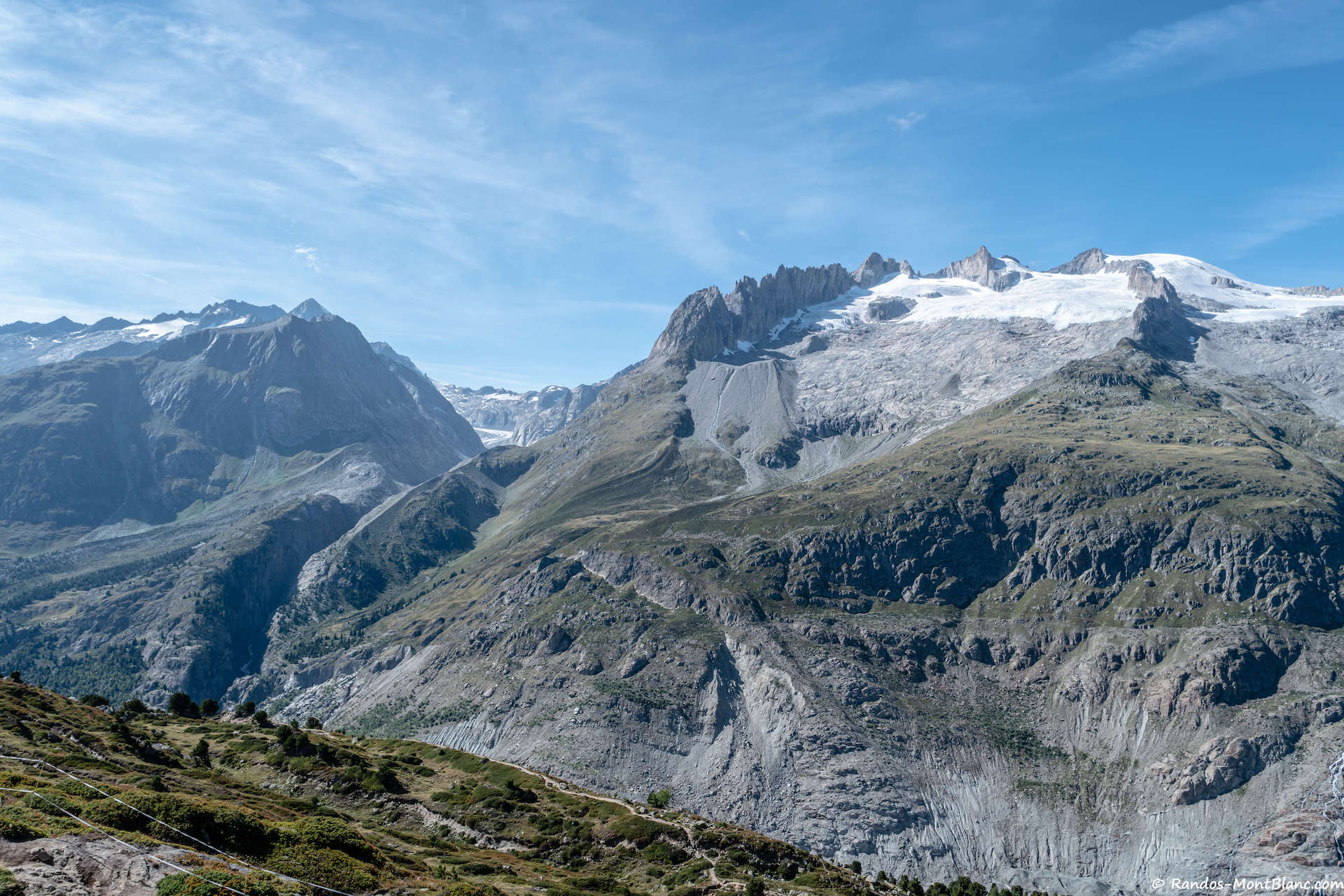 Malheureusement, celui-ci est, comme bon nombre de glaciers dans le monde, victime du réchauffement climatique. Si le glacier d’Aletsch a perdu environ 2600 m depuis 1880, 30 % de ce recul (soit environ 800 m) s’est déroulé entre 1980 et 2010, signe de l’accélération du recul du glacier. Chaque année, le glacier perd jusqu’à 50 m en longueur. En outre, il a été observé que celui-ci recule également en largeur. À ce titre, je vous invite à consulter l’album photo comparatif du Glacier du Trient ; le réchauffement climatique est à l’œuvre sous nos yeux, et si nous ne faisons rien pour stopper son cours, ces géants de glace ne seront plus que des souvenirs que nos enfants ne verront pas.