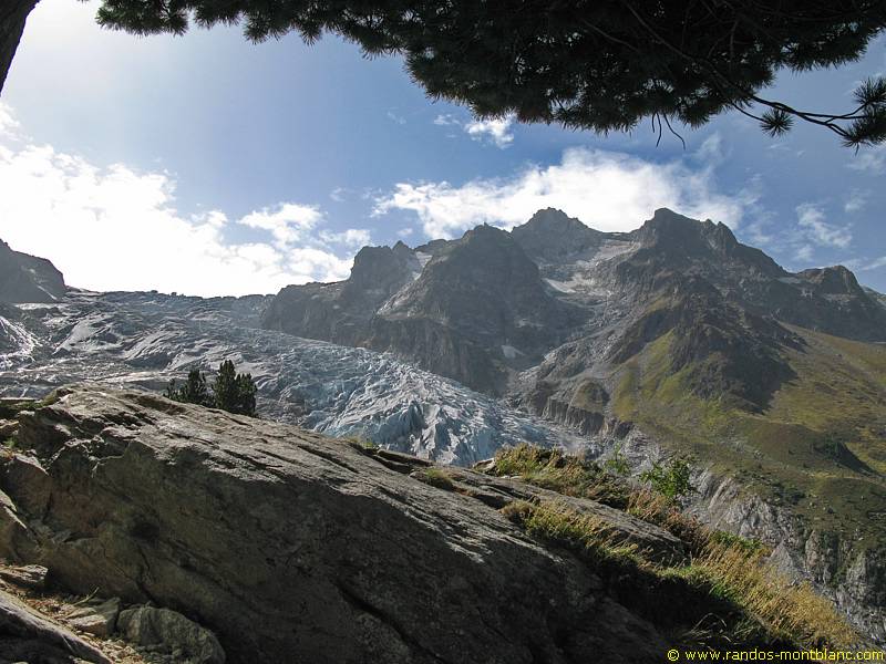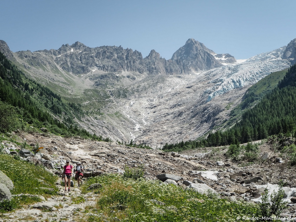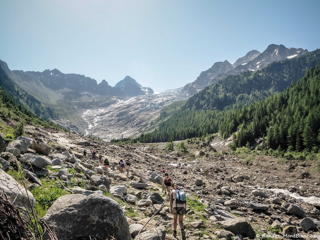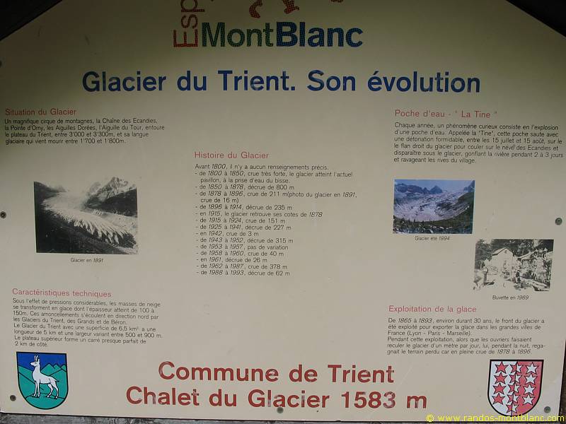 Contrairement à la première version du descriptif publié en 2004, il n’est plus possible d’atteindre le bas du glacier, puisque celui-ci a reculé considérablement. Désormais, pour contempler le glacier dans son intégralité, c’est-à-dire de la Petite Pointe d’Orny jusque dans la vallée, il faut emprunter le sentier de la Lys allant à la Fenêtre d’Arpette, indiqué par des marques rouges à hauteur du chalet du Trient. S’arrêter à Vésevey, à la cote 2096 m.