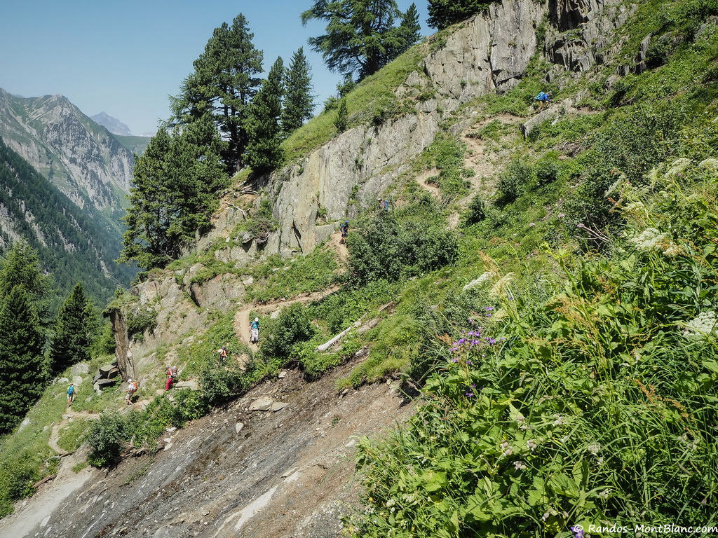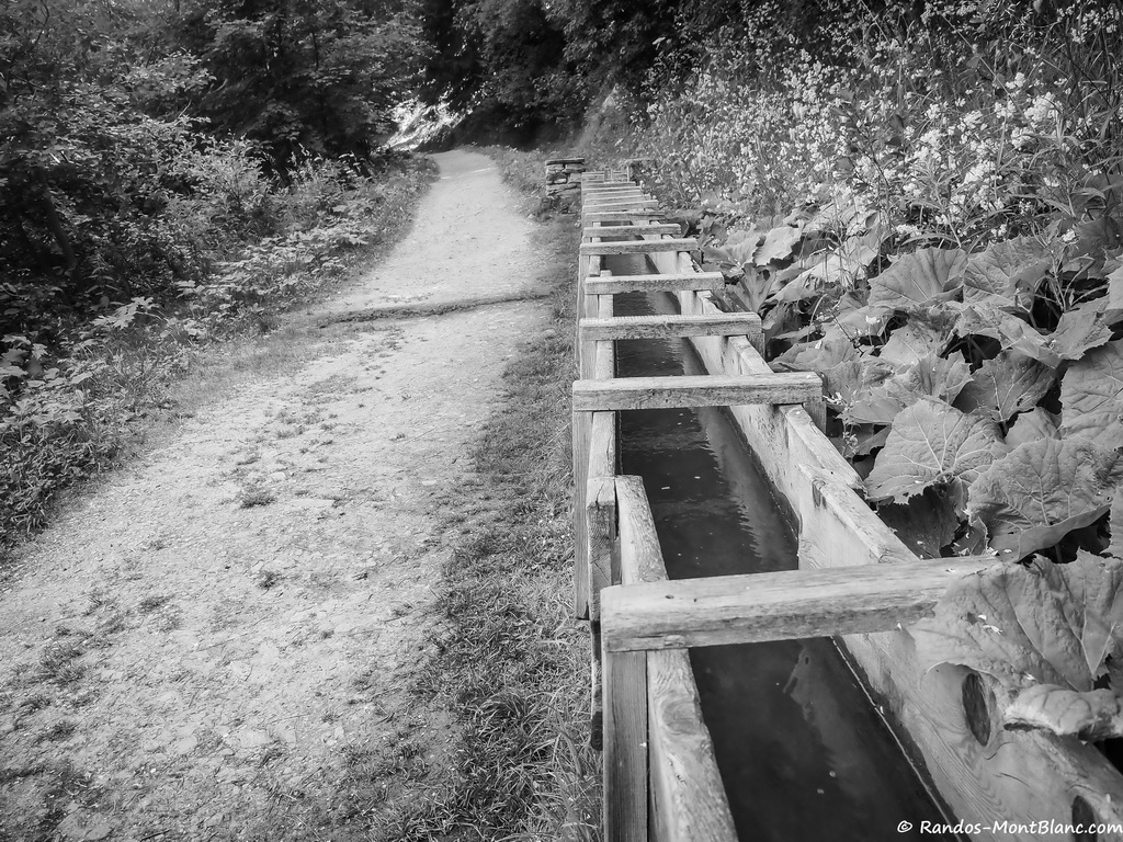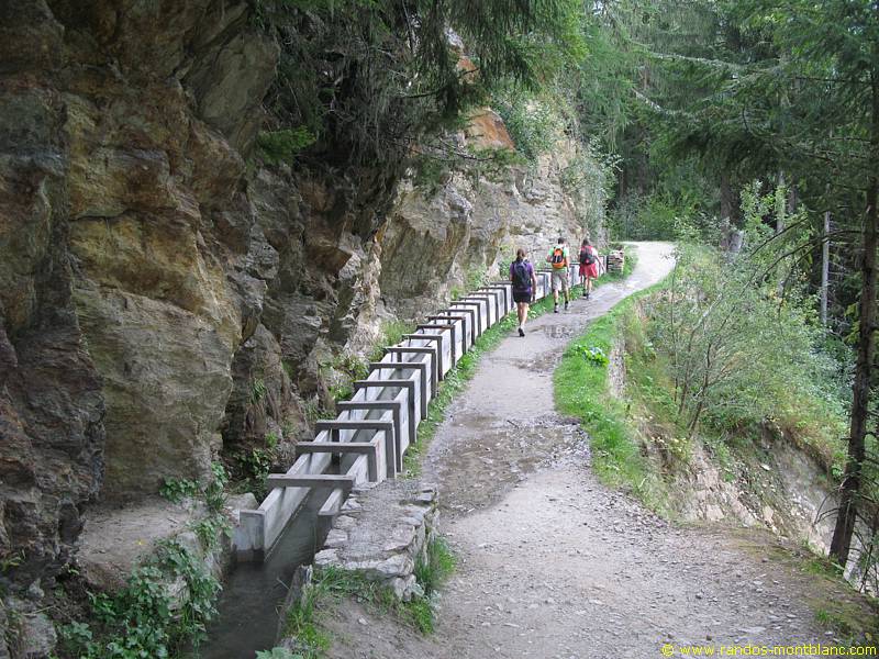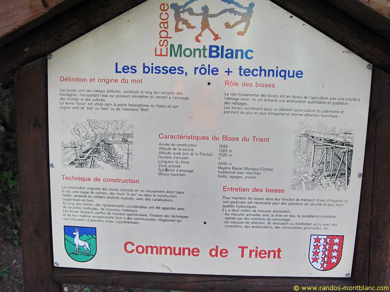 Le sentier suit le Bisse du Trient long de quatre kilomètres. Un bisse est un canal artificiel construit sur le versant d’une montagne, pour amener l’eau depuis le glacier, et ainsi arroser et irriguer les cultures.