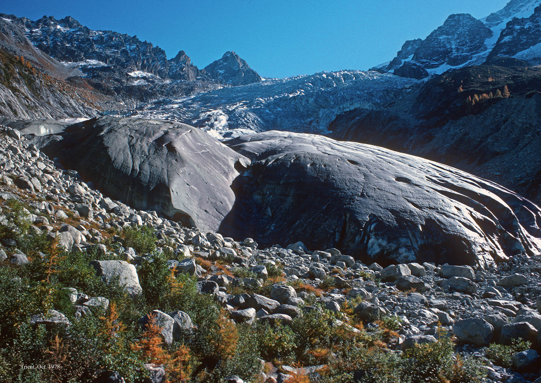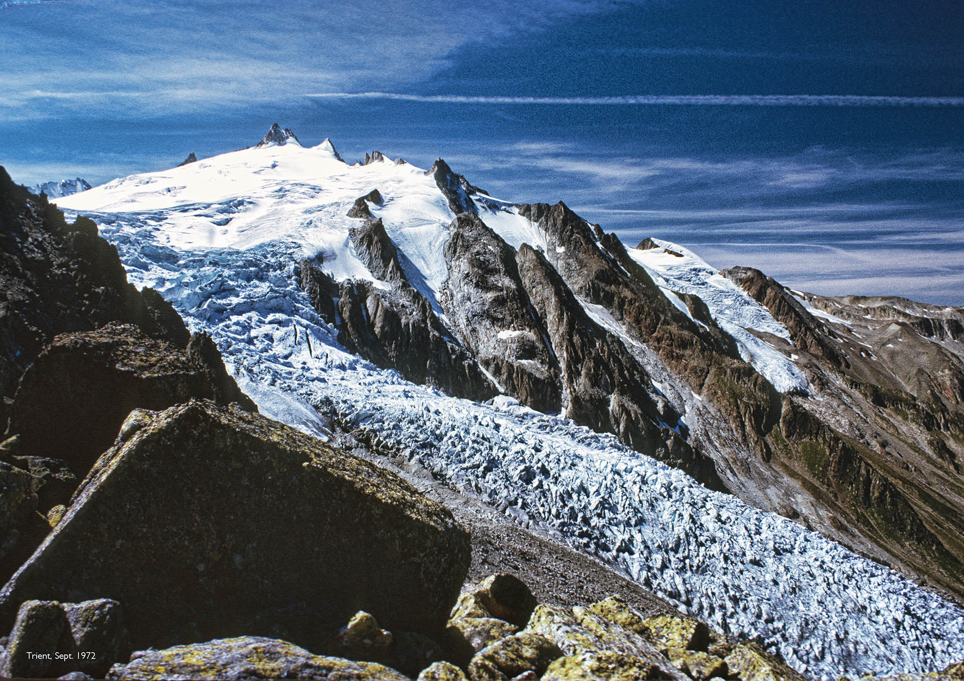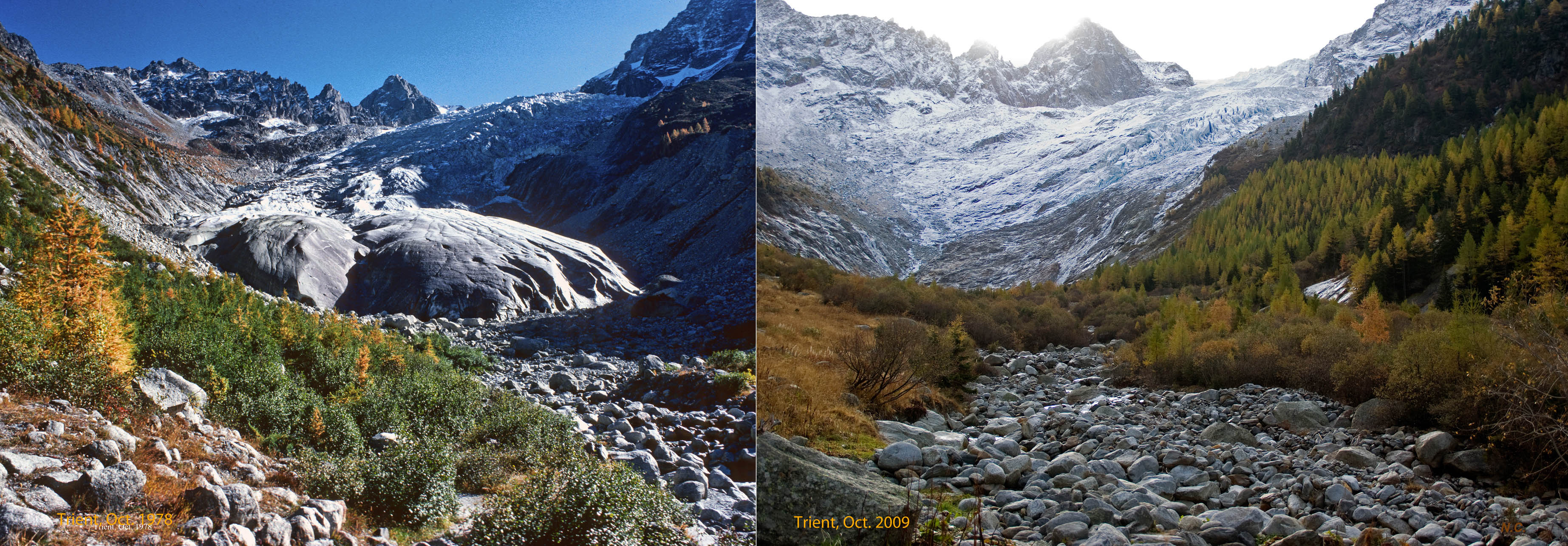 Moyen Glacier du Trient qui a considérablement reculé à cause du réchauffement climatique