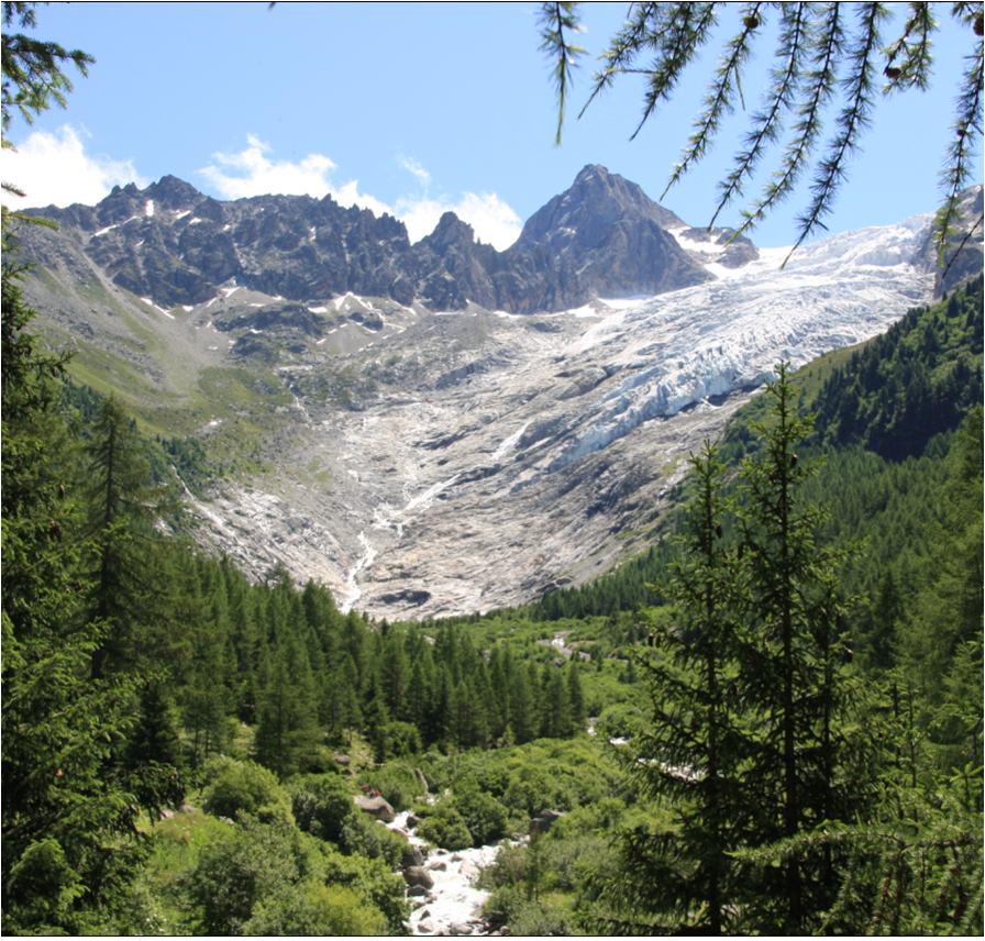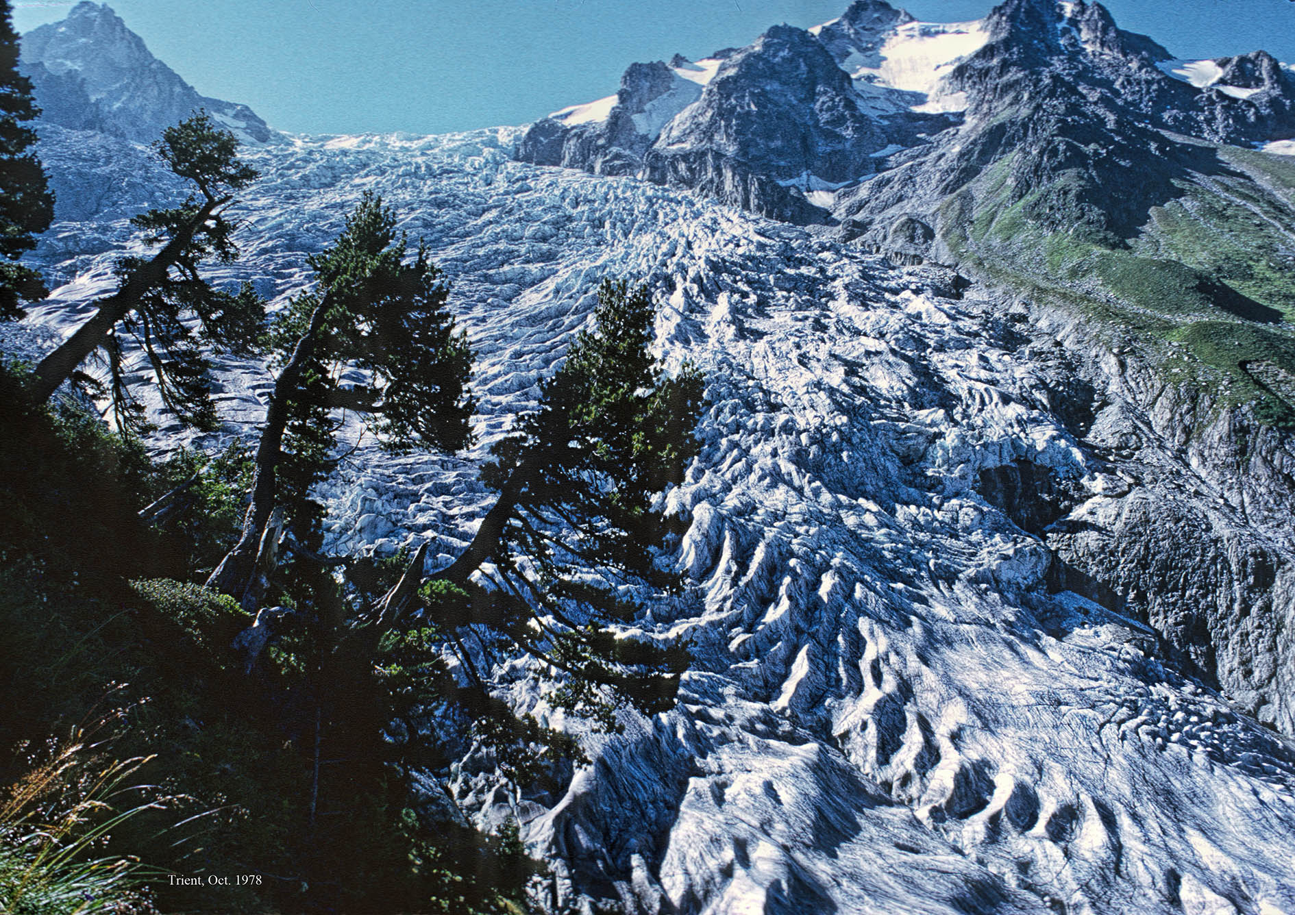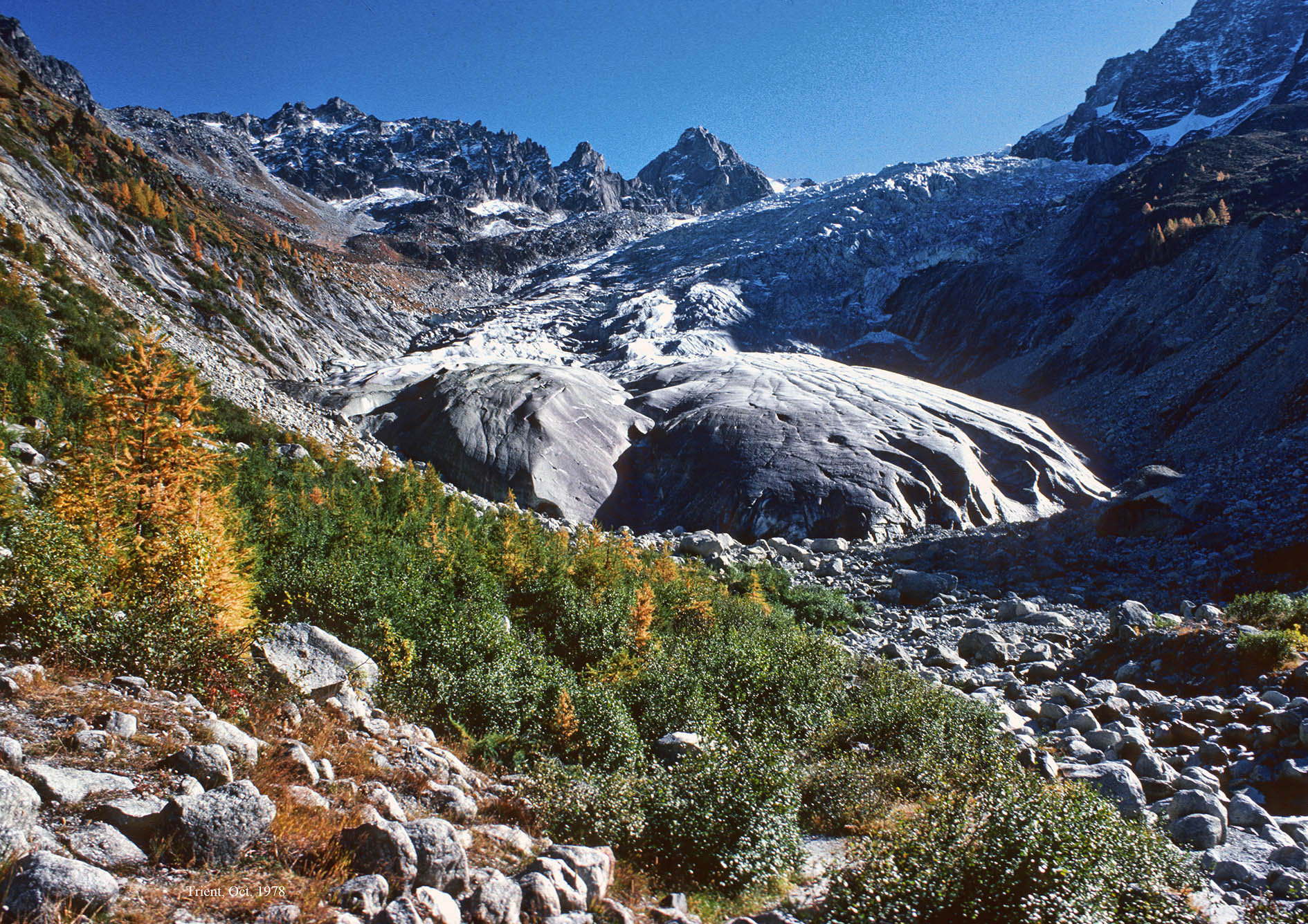 Moyen Glacier du Trient qui a considérablement reculé à cause du réchauffement climatique