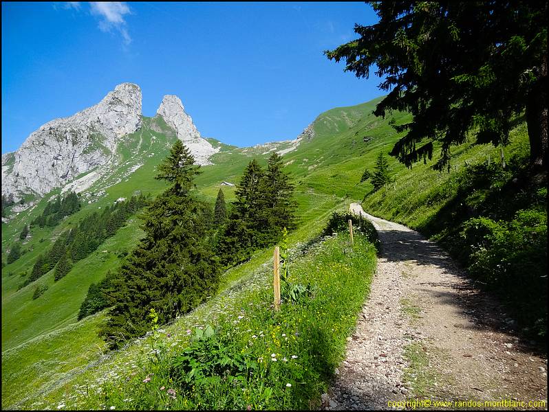 Toutes les randos ne portant pas la mention « Restrictions » autorisent la présence de nos amis à quatre pattes ; en gros, il suffit de supprimer toutes les randos dans le Massif du Giffre et des Aiguilles Rouges.