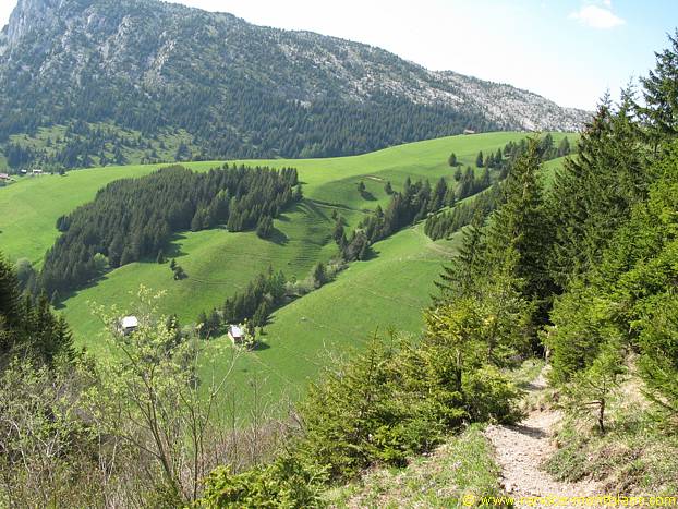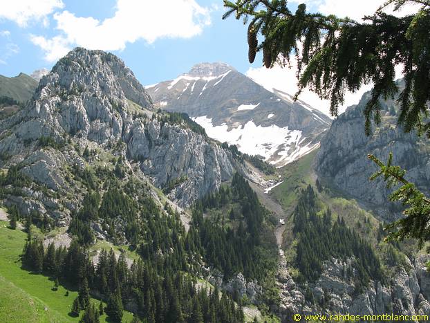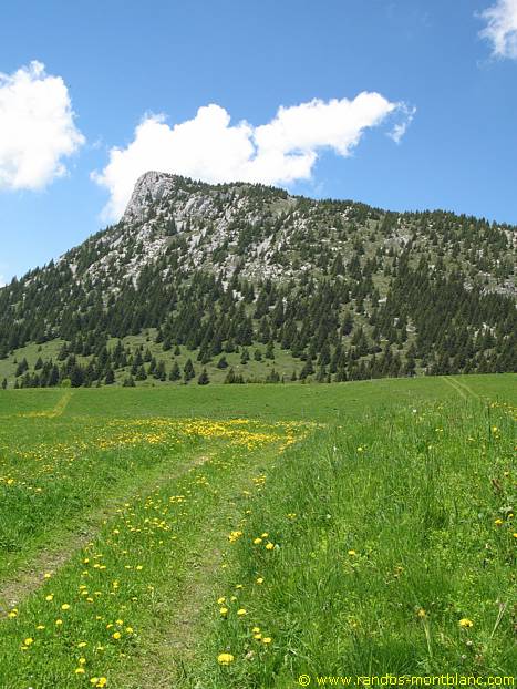 Du parking, prendre le sentier à droite qui s’élève tranquillement dans les alpages ; le suivre jusqu’à un premier chalet, habité l’été, situé à l’orée de quelques arbres. Après une courte descente qui gagne rapidement un groupe de petits chalets, le sentier monte plus franchement pour longer une falaise très prisée par les adeptes de l’escalade.