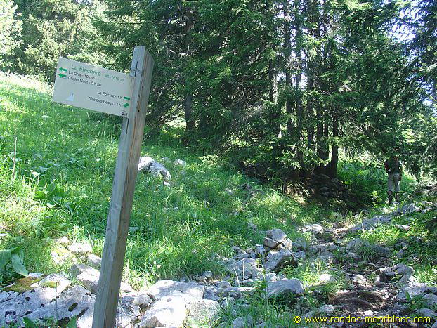 Rejoindre le chalet de Malatrait puis celui de « La Cha » par la piste forestière. Dépasser le dernier chalet et, à la bifurcation, laisser à gauche le sentier amenant à l’Encrennaz (qui sera celui du retour), pour se diriger en direction de la Forclaz.