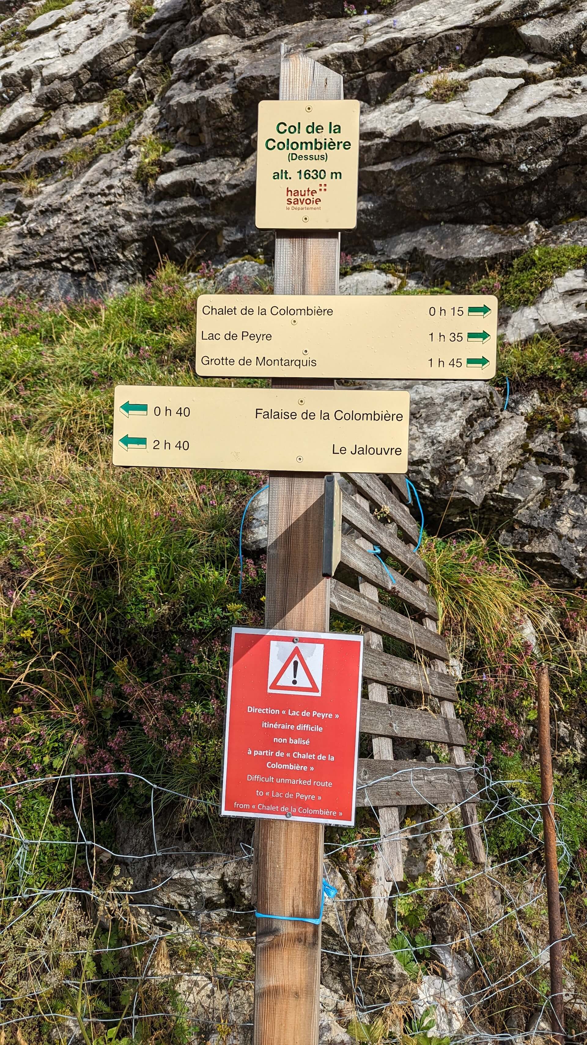 Un panneau dans les 10 premières minutes informe de l’itinéraire difficile et non balisé.