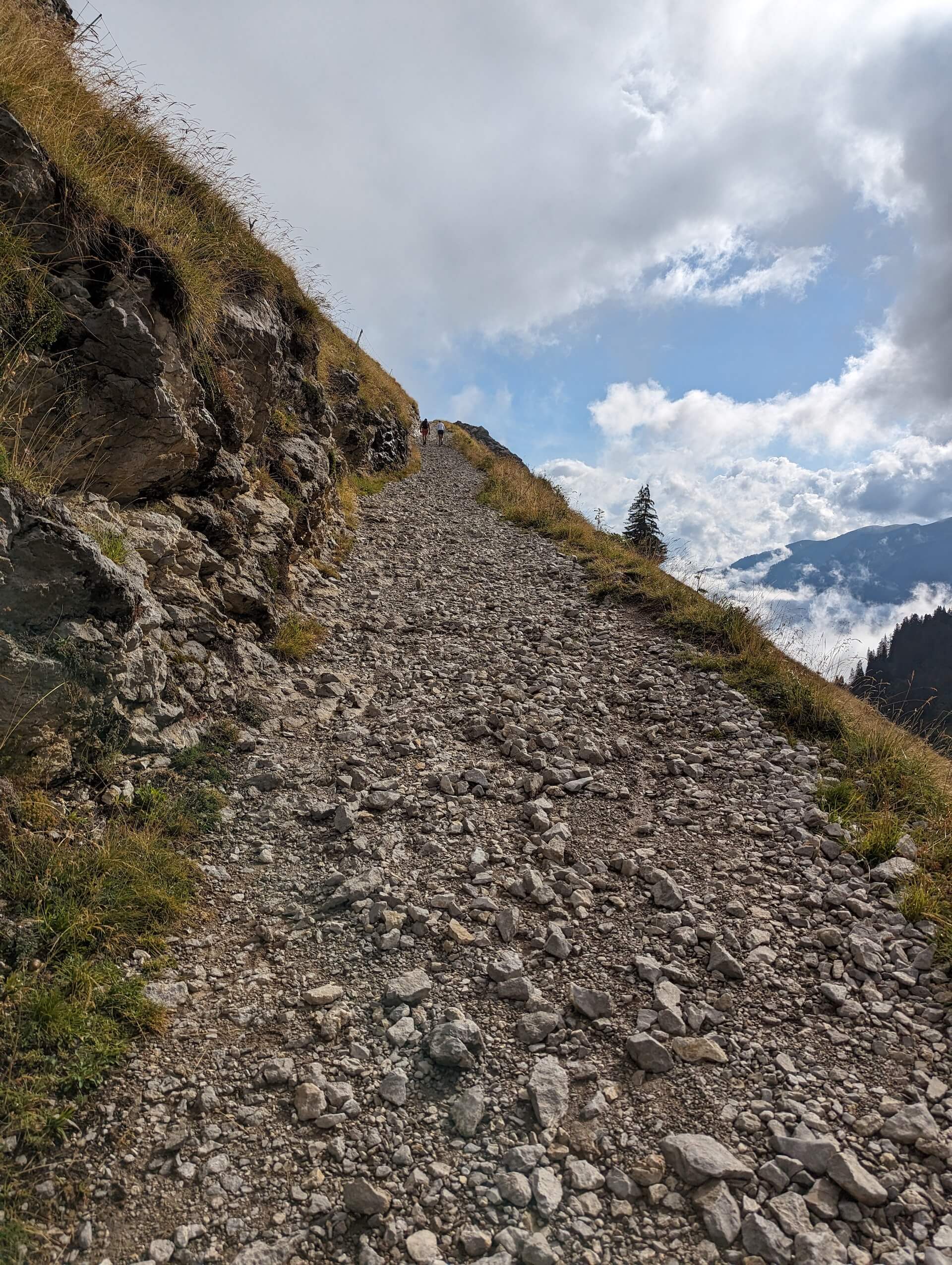 La montée au col de Balafrasse doit être considérée comme une ascension difficile. Le chemin raviné est à vrai dire assez technique avec beaucoup de pierres instables et de larges marches. Celui-ci doit appeler à la plus grande prudence à la descente.