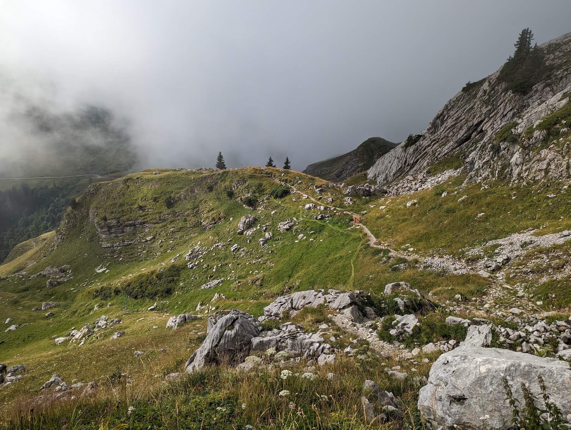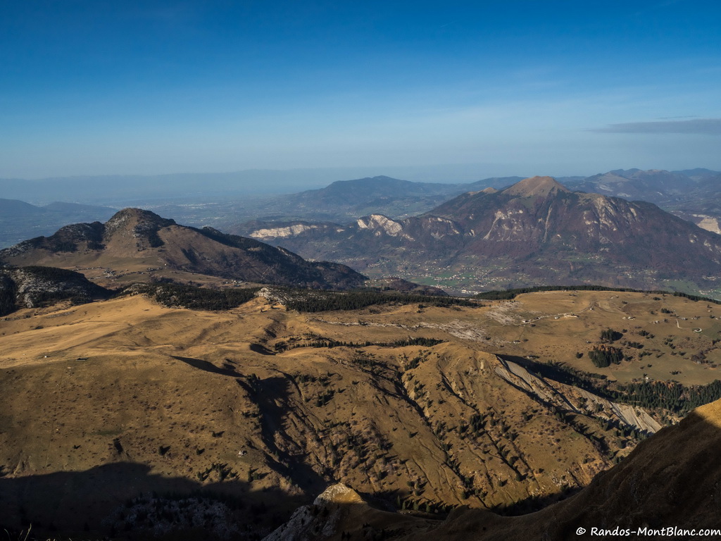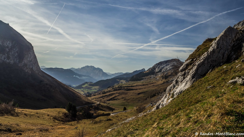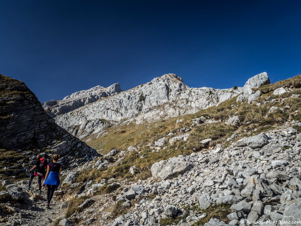 Il est possible de continuer vers le Col de Balafrasse. La vue y est splendide sur le Massif des Aravis et du Mont-Blanc d’un côté, ainsi que sur le Léman et le Massif des Bornes de l’autre. Toutefois, et comme rappelé plus haut, l’ascension est difficile du fait de la raideur du sentier et de nombreux passages ravinés en dévers. Attention également aux plus téméraires qui décideraient de poursuivre sur la droite en direction de la Pointe de Balafrasse. Le sentier sur la crête est en effet très étroit et une chute à cet endroit serait fatale.