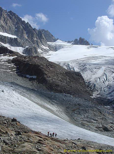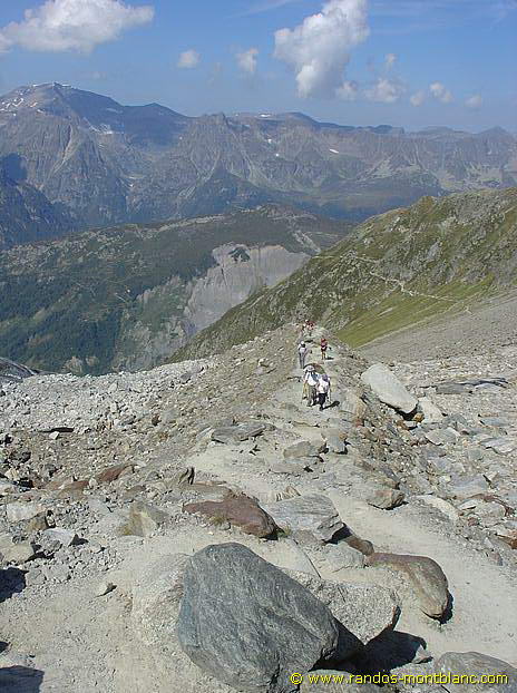 Attention, cet itinéraire, bien que plus court, reste beaucoup plus sportif : la descente de la moraine dans les débris de roche est physique et la pente est par endroits très raide et peut effrayer les personnes sensibles au vertige.
