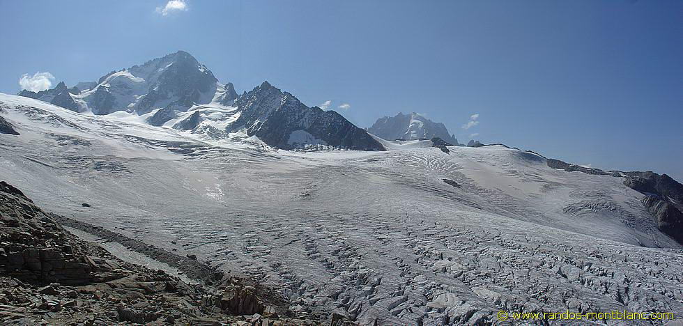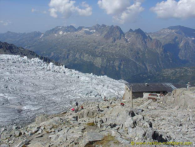 Ne pas hésiter à continuer le sentier cairné au-dessus du refuge Albert 1er qui amène en surplomb du glacier, très près, face à l’Aiguille du Tour. Le panorama est superbe et la sensation d’isolement totale.