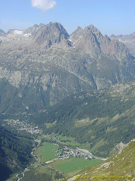De l’autre coté de la vallée, ce sont les Aiguilles Rouges qui attirent le regard, et tout en bas le village du Tour qui parait bien minuscule.