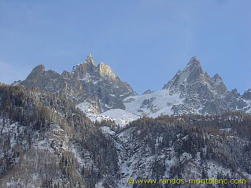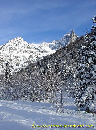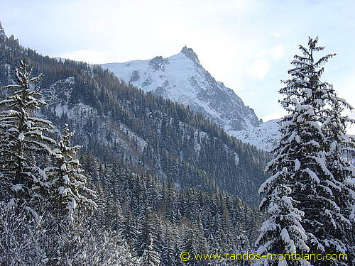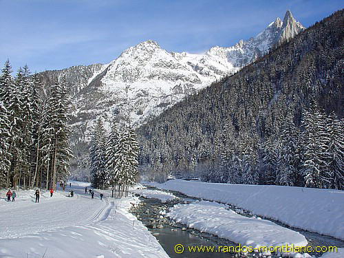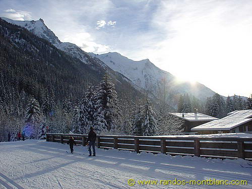 Pour les plus courageux, il est possible de poursuivre jusqu’au bout du bois pour rejoindre la commune des Praz et ainsi s’engager sur le sentier enneigé du golf menant au tranquille Bois du Paradis situé sous le Balcon Sud. D’ici, l’on a une meilleure perspective sur l’Aiguille du Midi et le Dôme du Gouter.